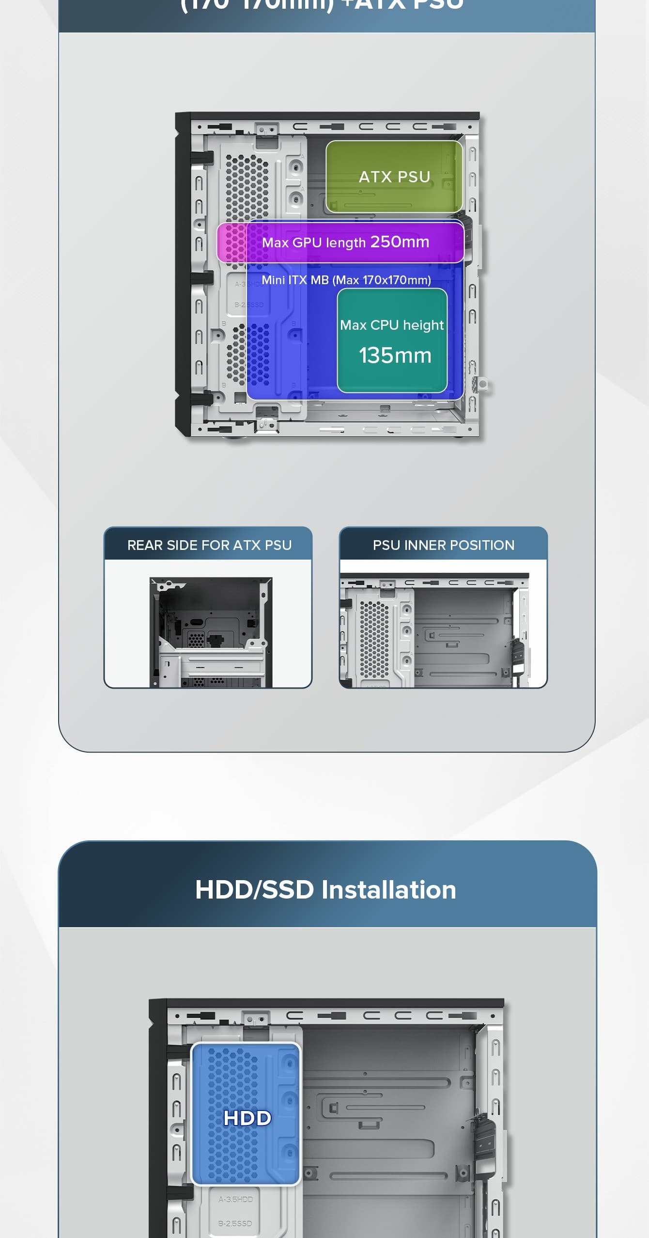 | Form Factor (Midi, Micro, Mini ITX, Full) | Micro-ATX/Mini ITX | |
