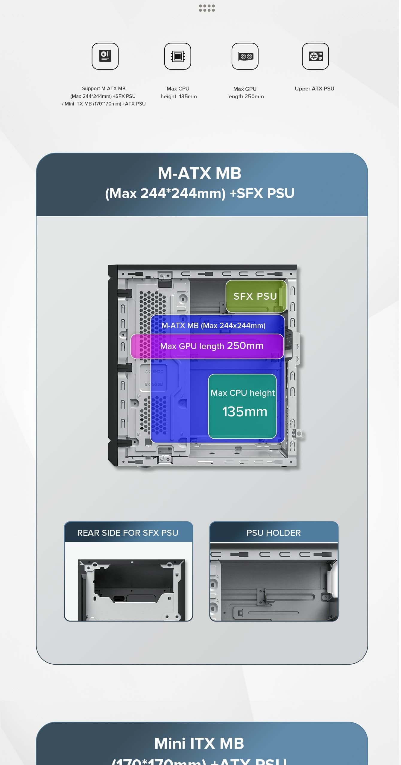 | M/B Form Factor | Micro-ATX(244*244), ini ITX | |