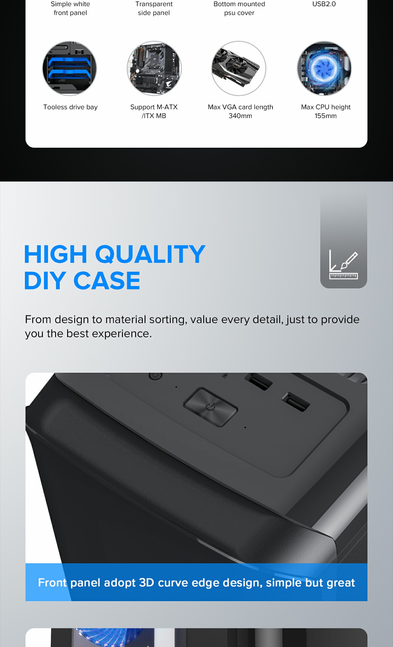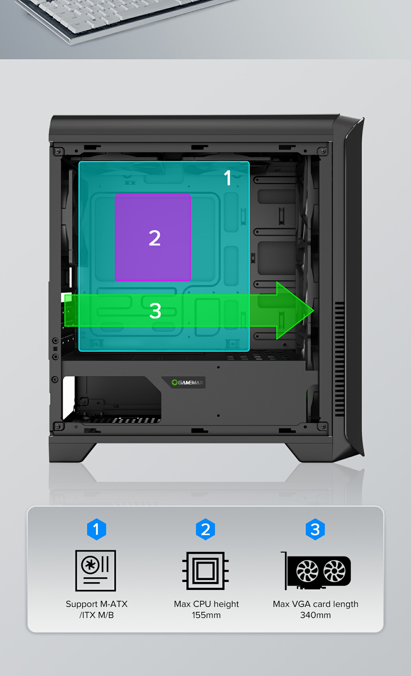 GPU and CPU Support - Support 340mm VGA card and 155mm CPU cooler