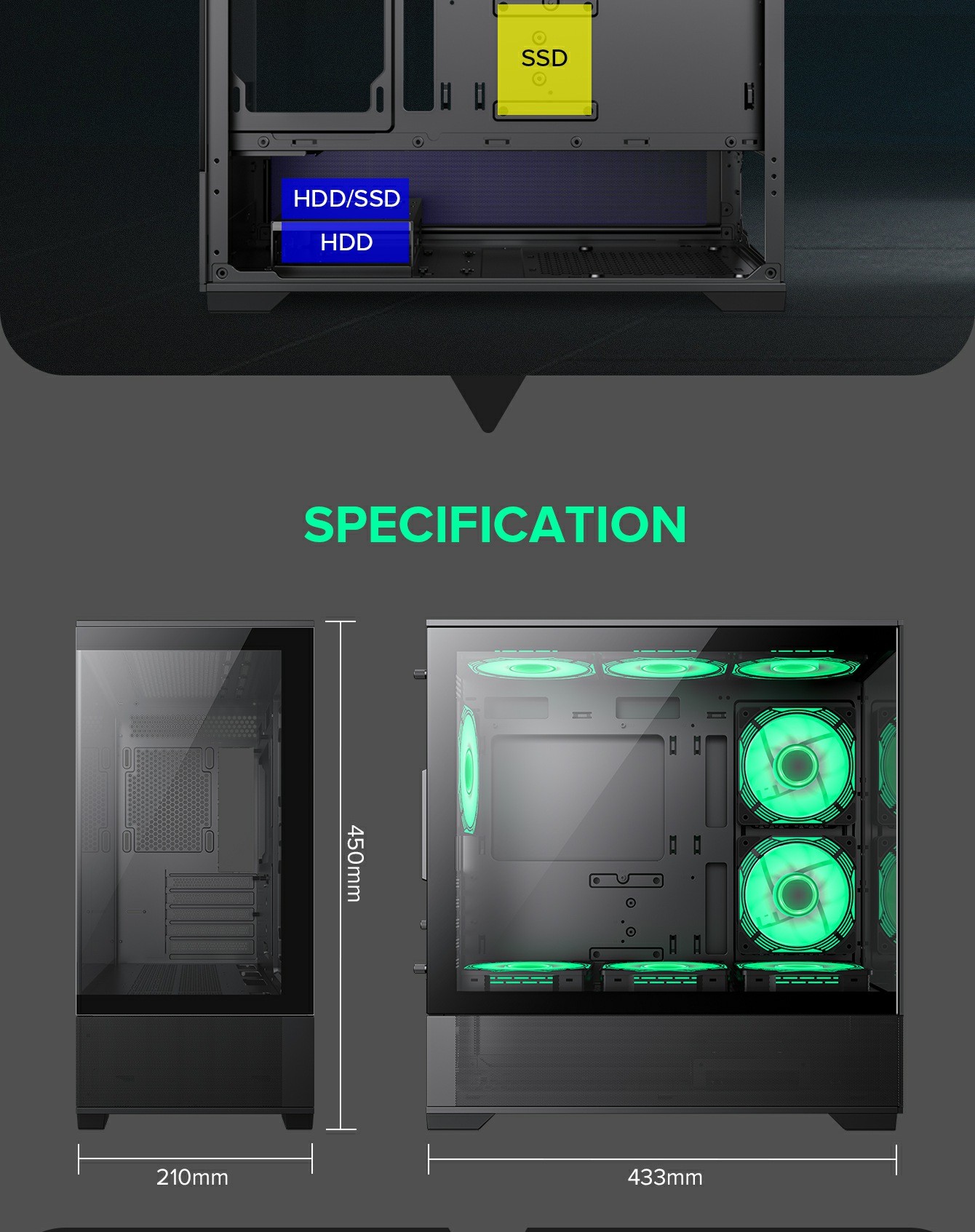 | Dimensions | Chassis | (L)415*(W)210*(H)435mm |