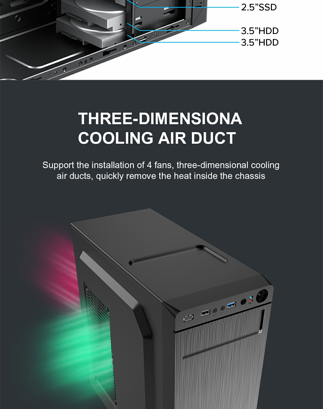 along with a 21mm deep internal cable management system (allowing the builder to hide the internal cables, giving greater airflow) help to give better cooling to all components within your system.