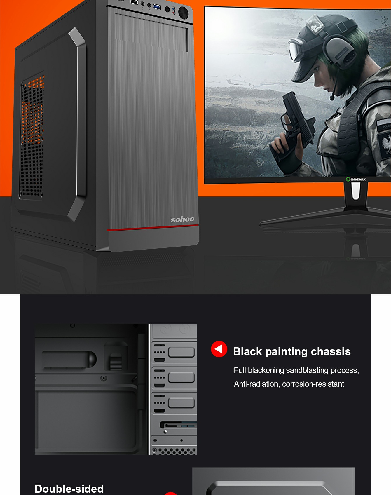 1 x Super Speed USB3.0 port(Optional), 1 x Hi-Speed USB2.0 Port and HD audio ports is an ideal solution for any home / SOHO user