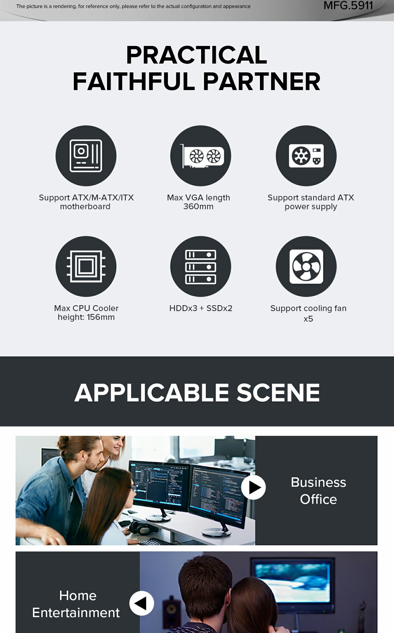 Motherboard Support:ATX, Micro ATX, Mini ITX
