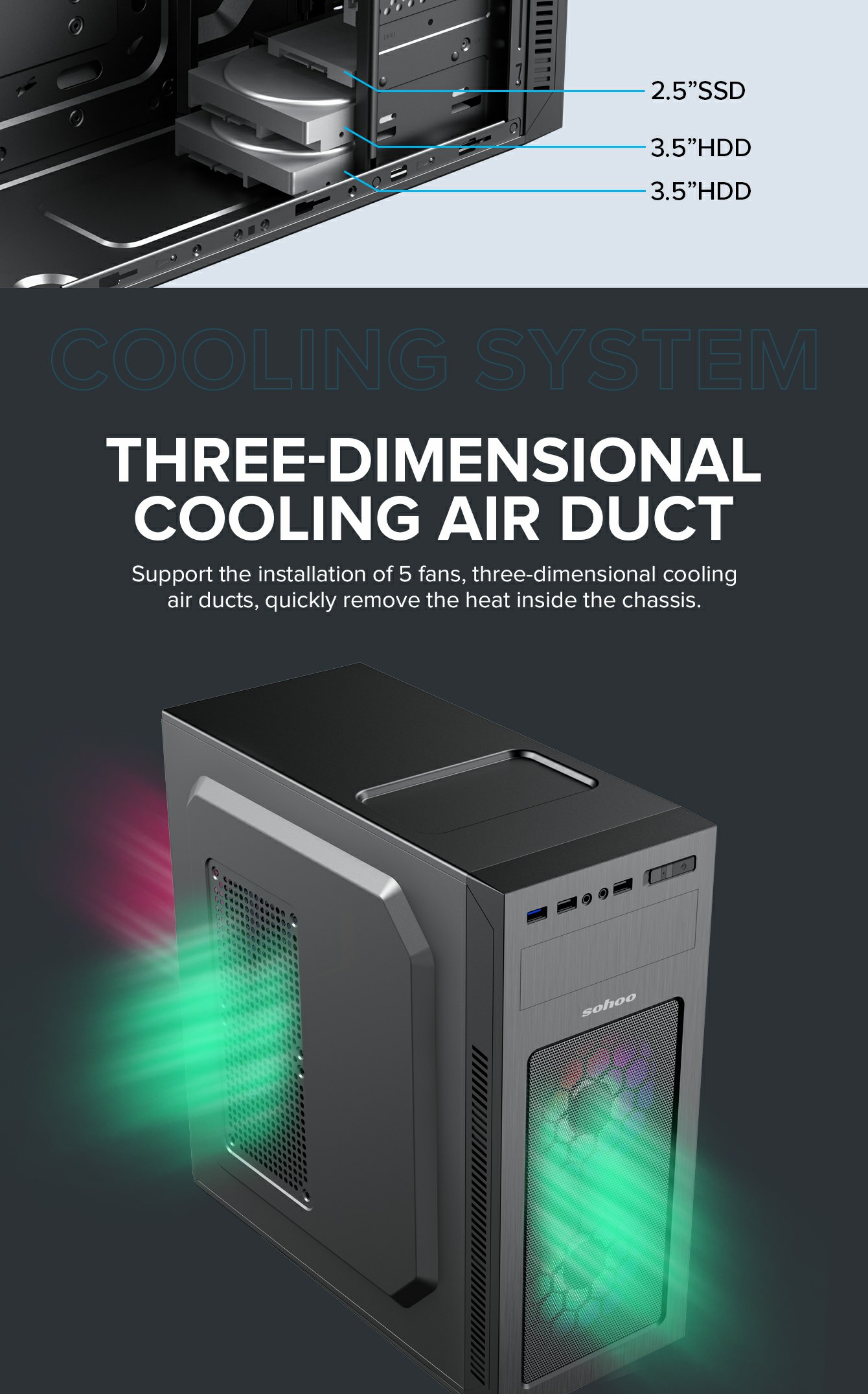 along with a 21mm deep internal cable management system (allowing the builder to hide the internal cables, giving greater airflow) help to give better cooling to all components within your system.