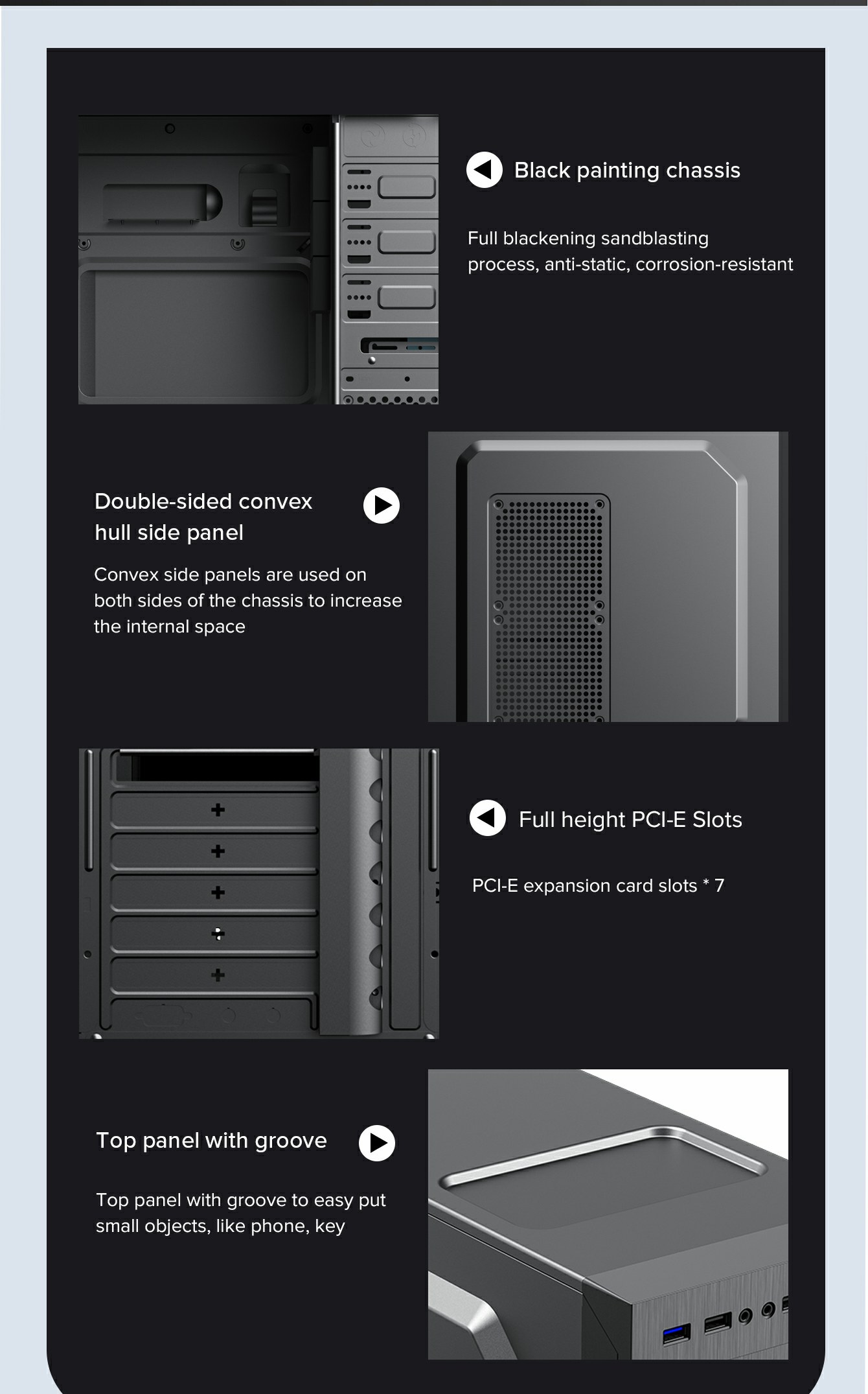 The Midi tower is excellently styled with a black brushed aluminum effect front panel