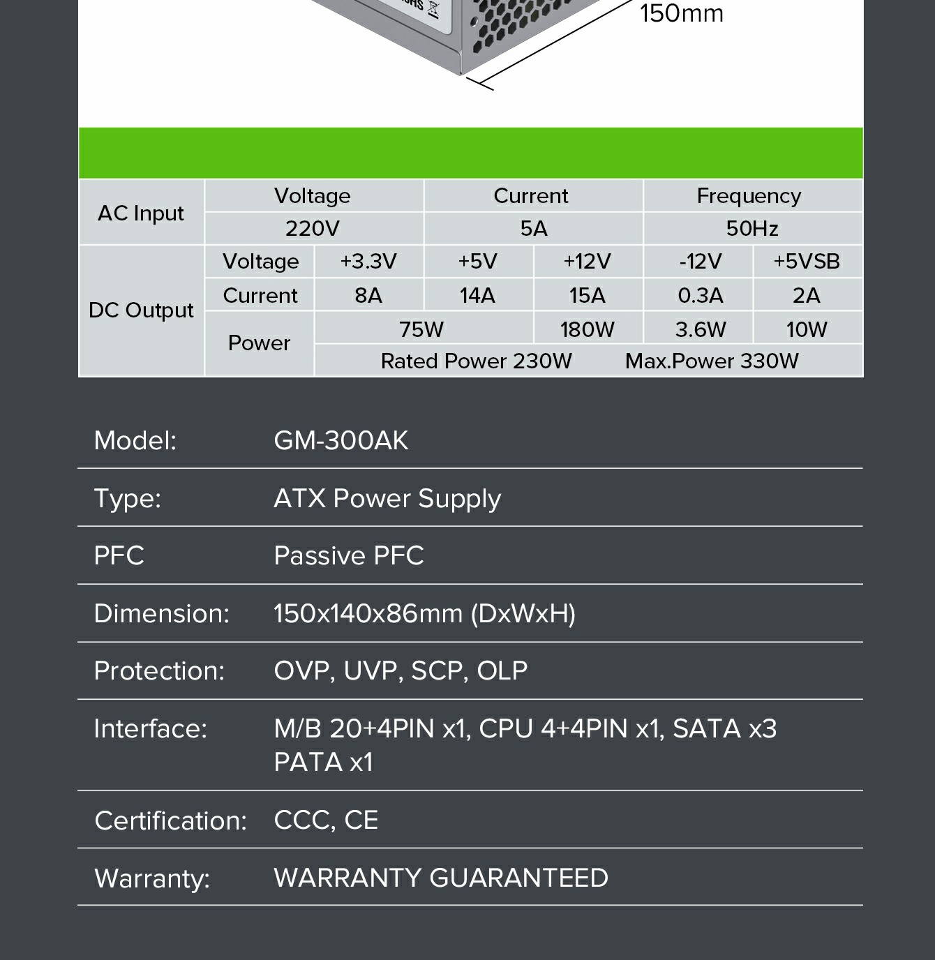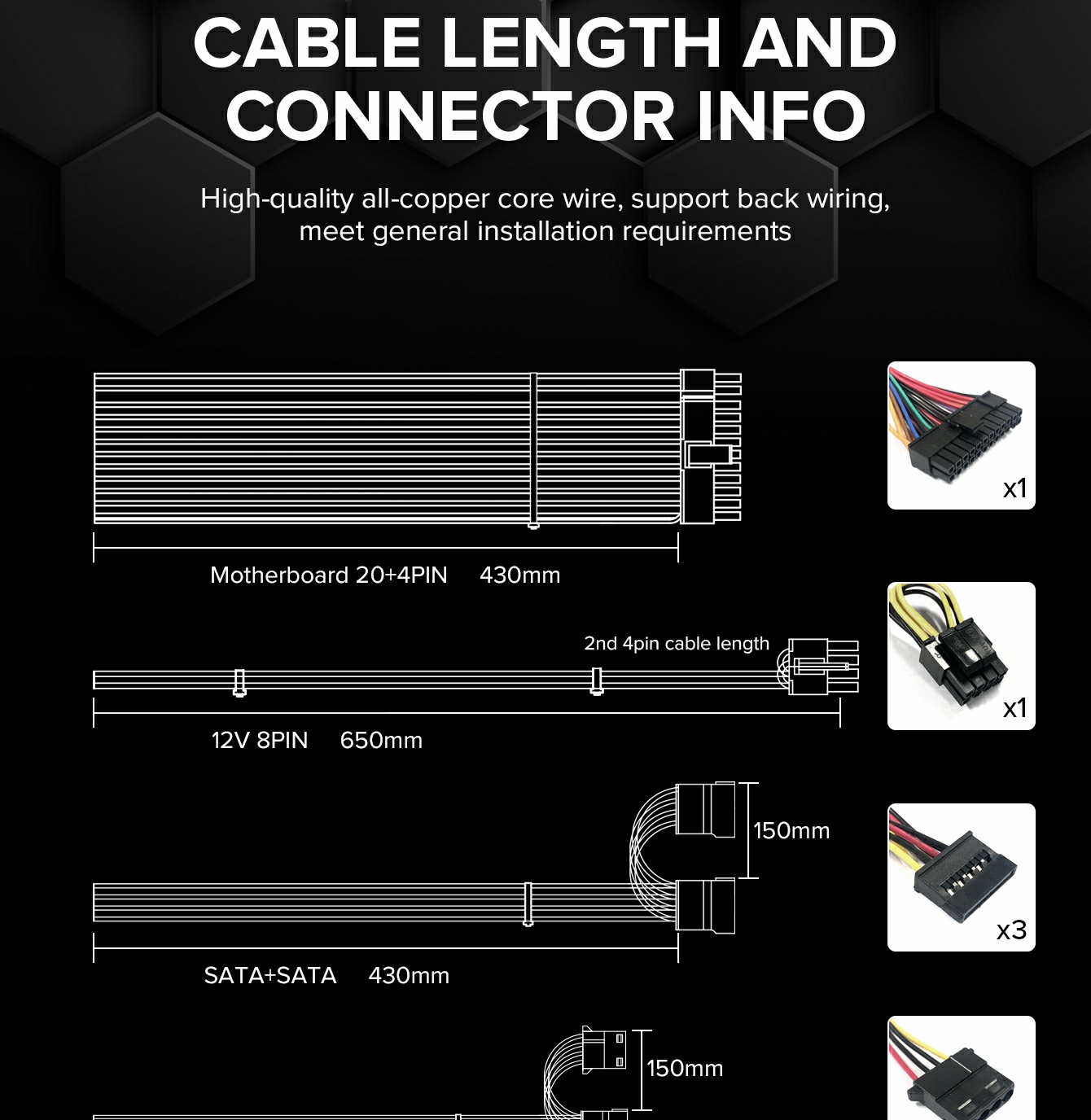 The main board and CPU power supply interface are 20+4Pin, 4+4Pin respectively
