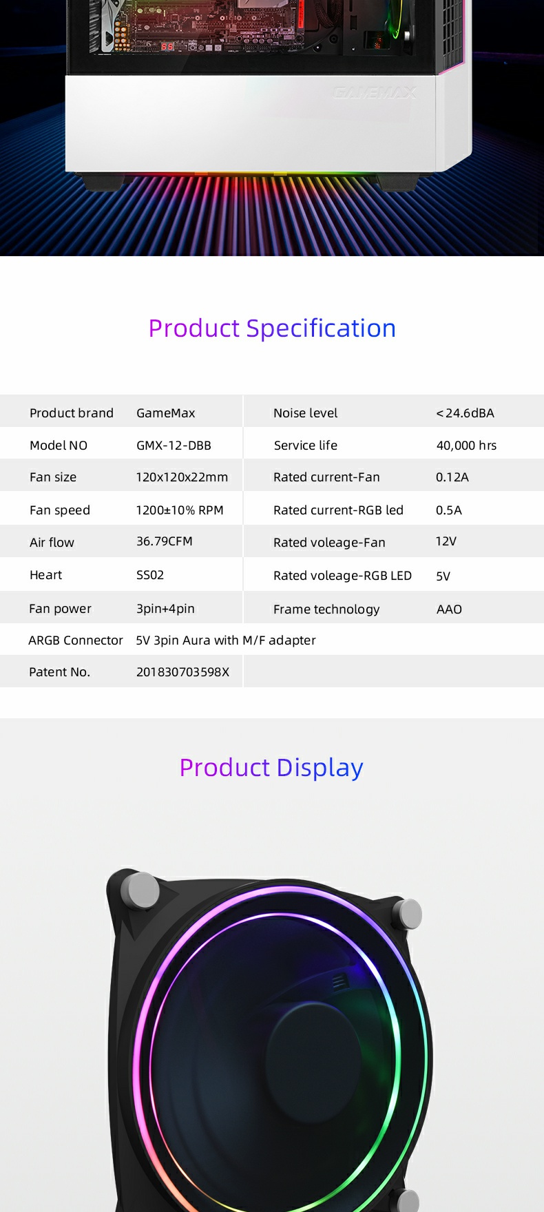 1. Dual Ring Big Bowl ARGB 12cm Fan, Customized OEM brand