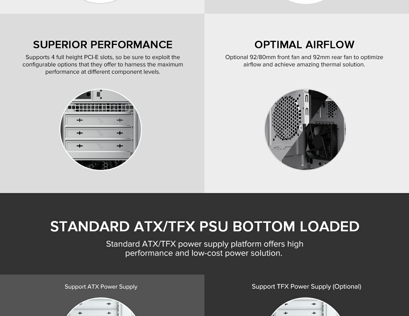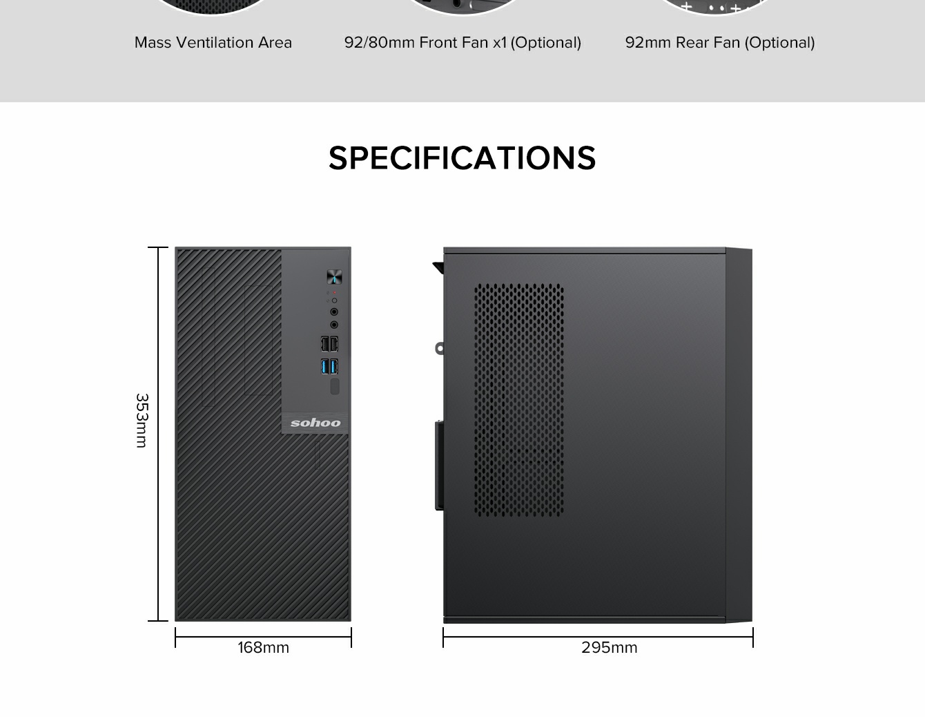| Reserved Fan Ports: | Front:1*92/80mm (optional) Rear: 1*92/80mm (optional) |