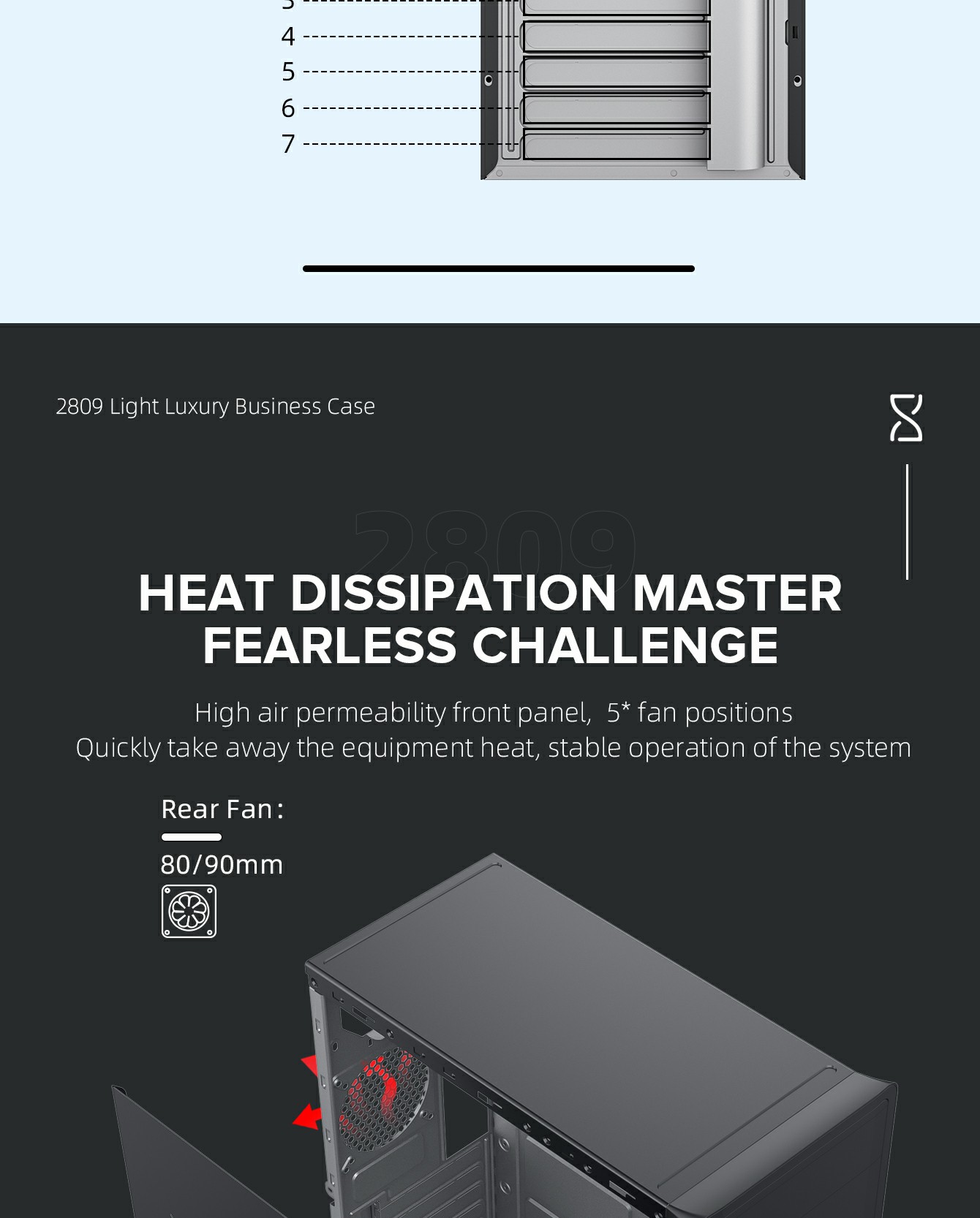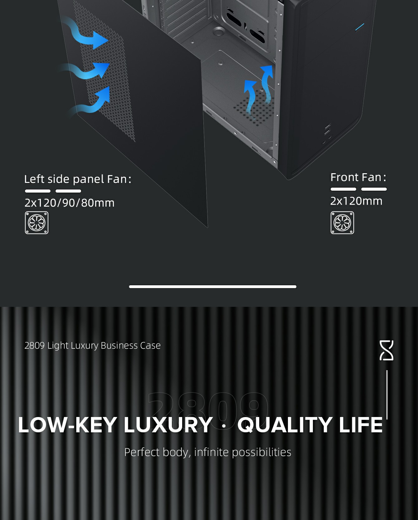 | Cooling Fan Support | Front | 2x120mm (Fan optional) |