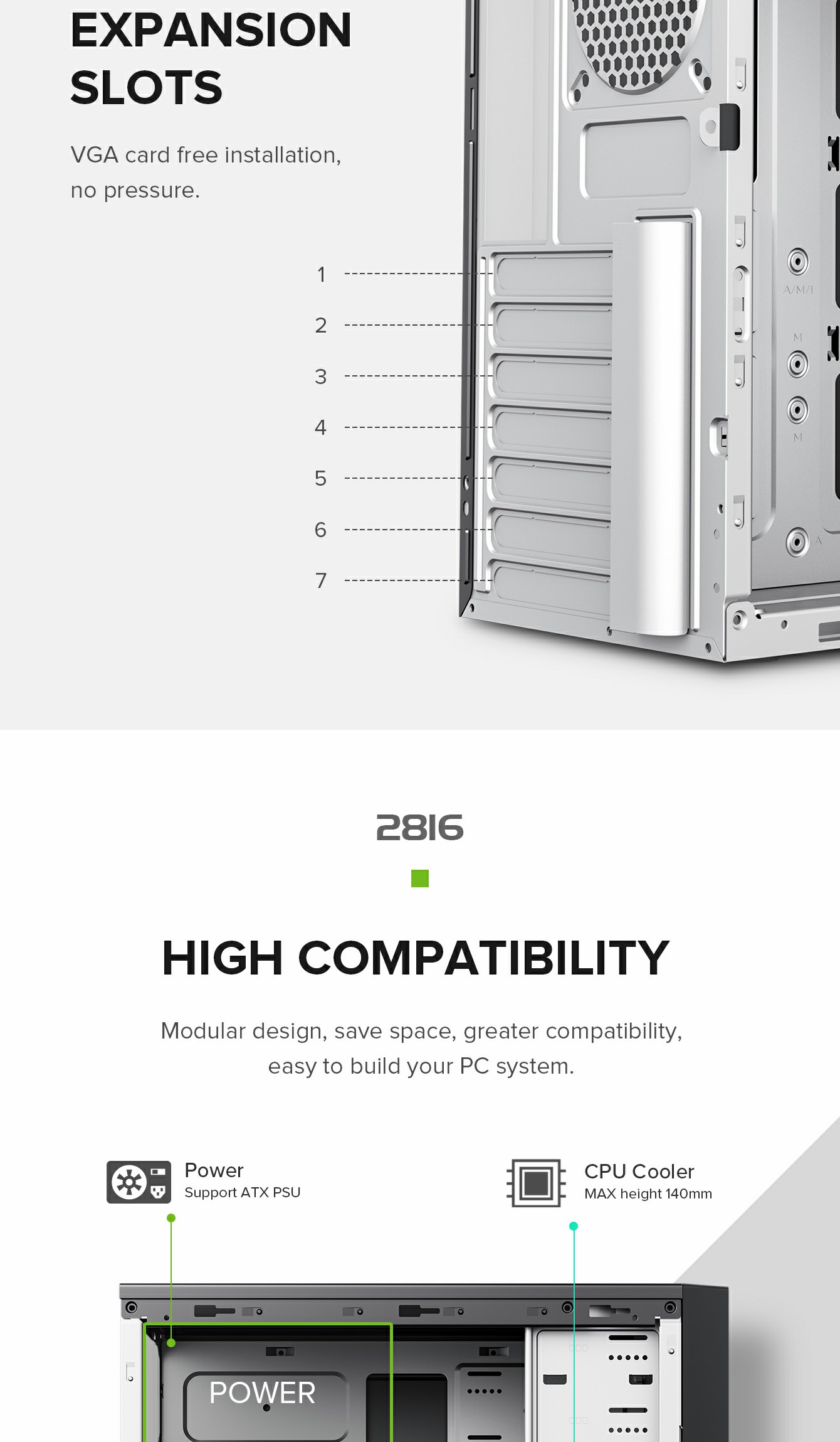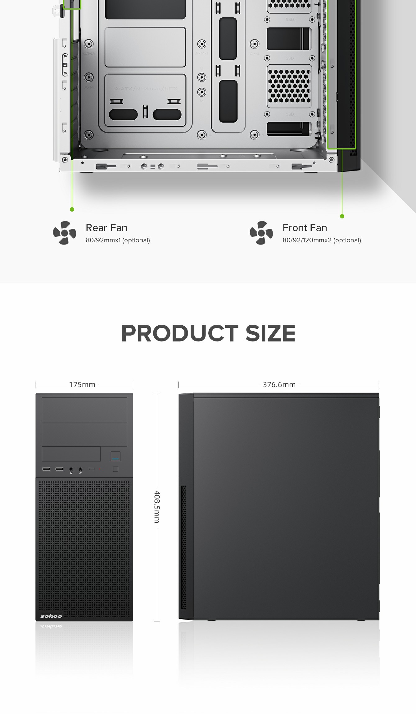 Support ATX /MATX/ITX Motherboard in the compact design and ATX Power supply on classic top position