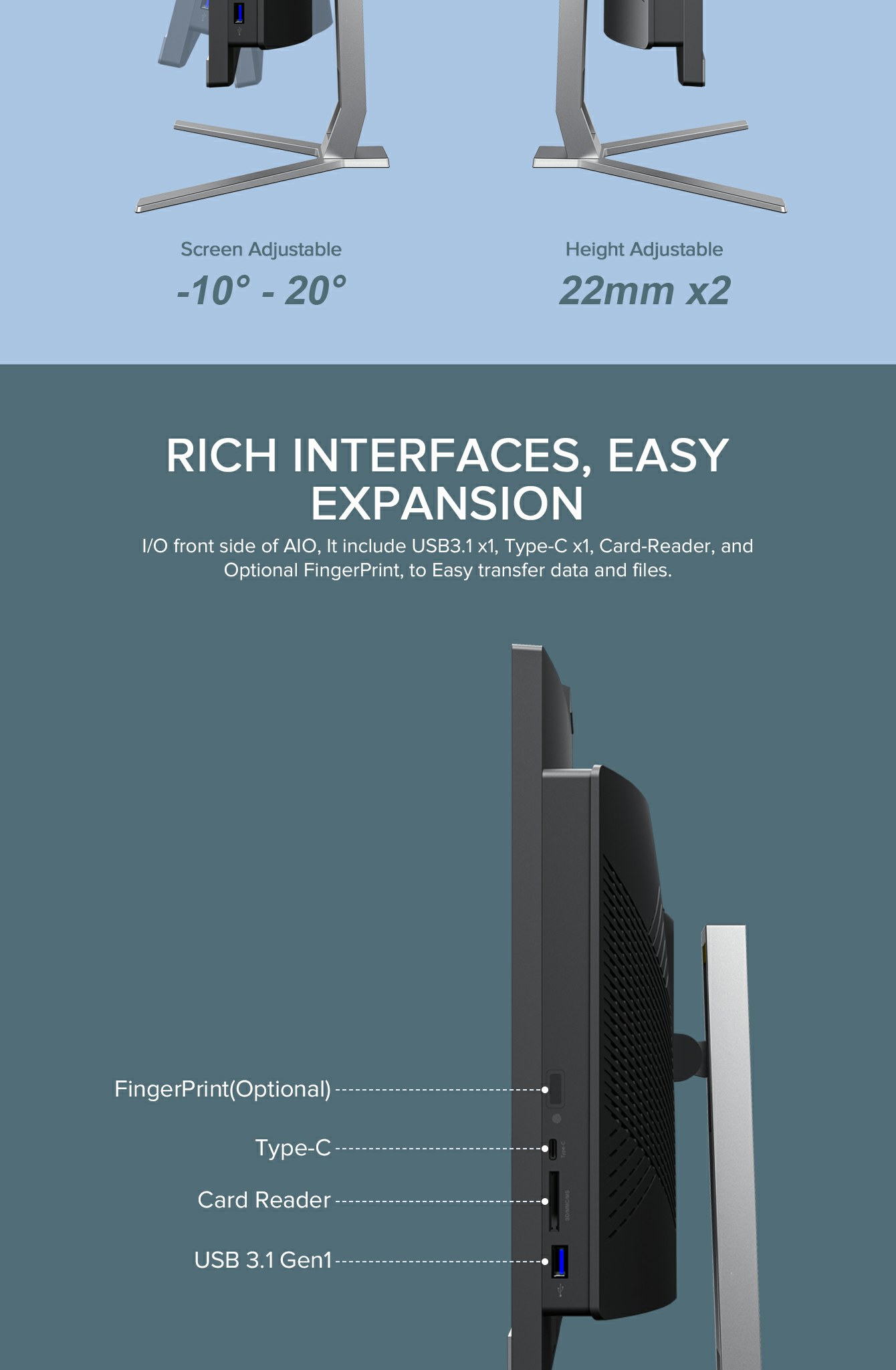 | USB(Included) | On frame, USB3.0*1(USB3.1 GEN1) Type-c*1 | ||