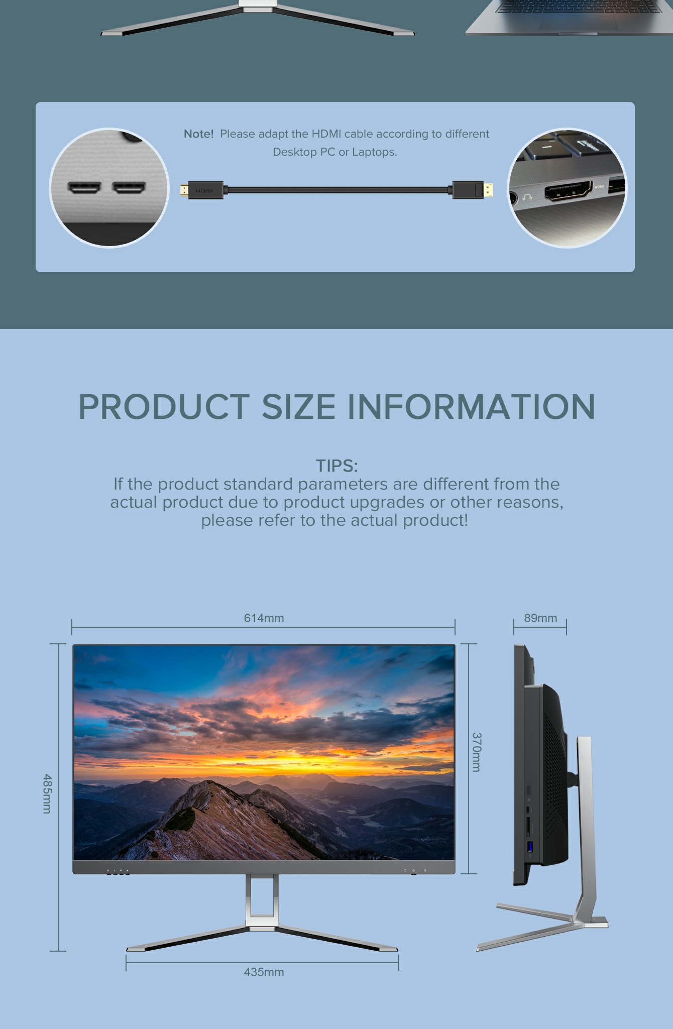| Packing Ref | Product size | Without Stand (L*H*D) 614*370*89mm | Included Stand (L*H*D) 614*485*89mm |