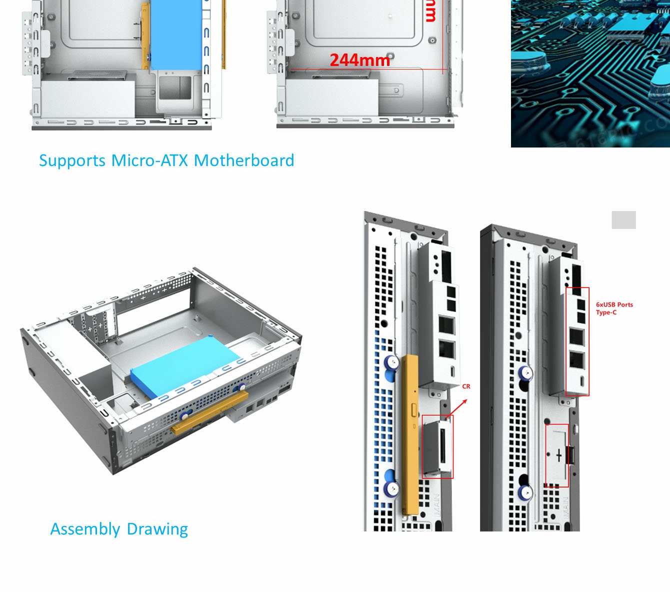 | Front USB Ports: | USB2.0x4 or 6 +HD-Audio (as basic) |