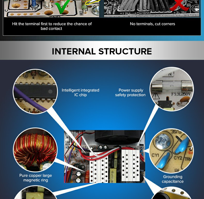 | Peak Watt-Contiuned Watt | Peak OPP 500W, and Contiuned work at 200 W | ||||||||||