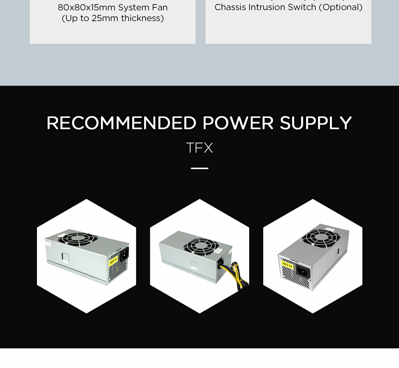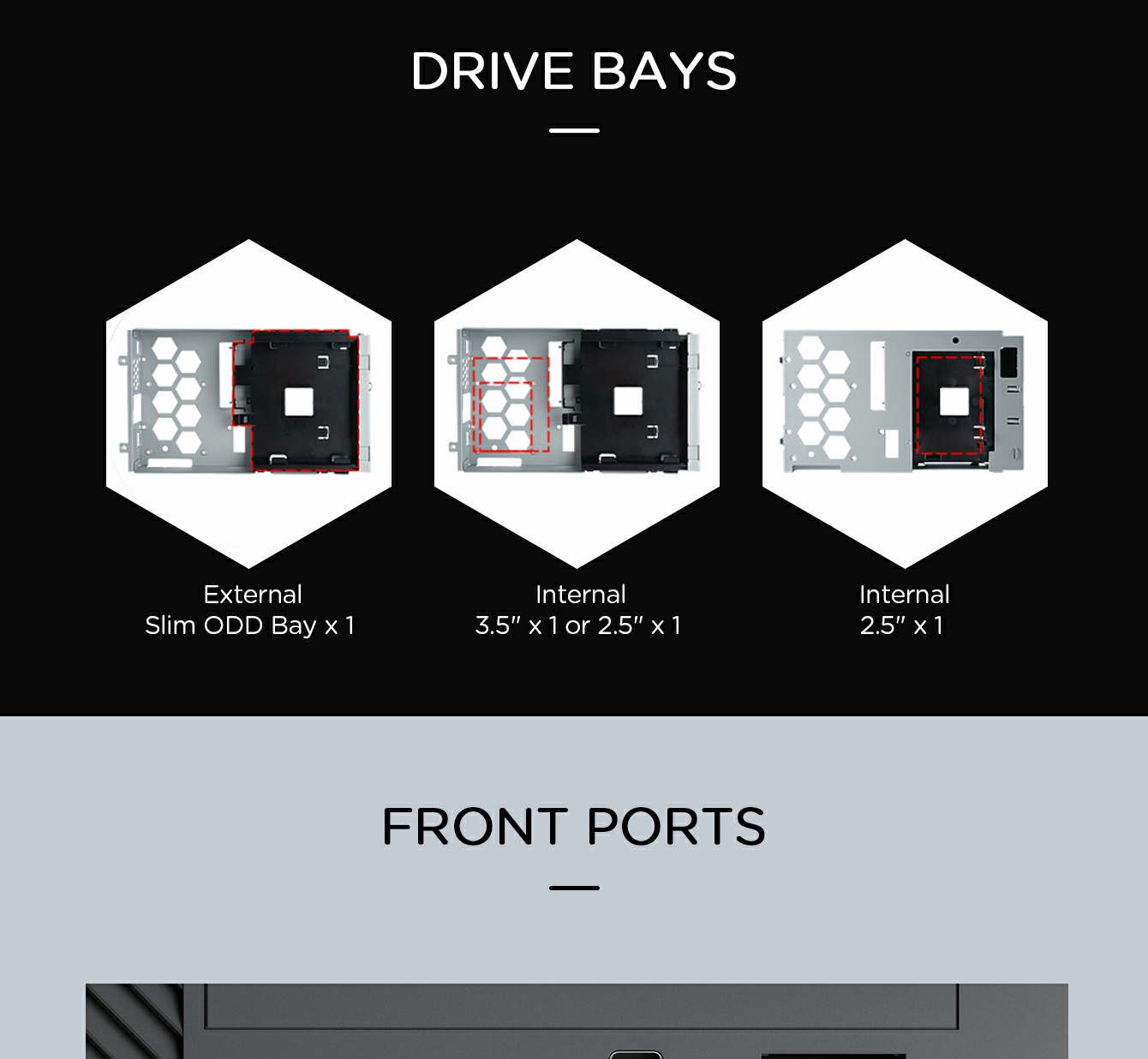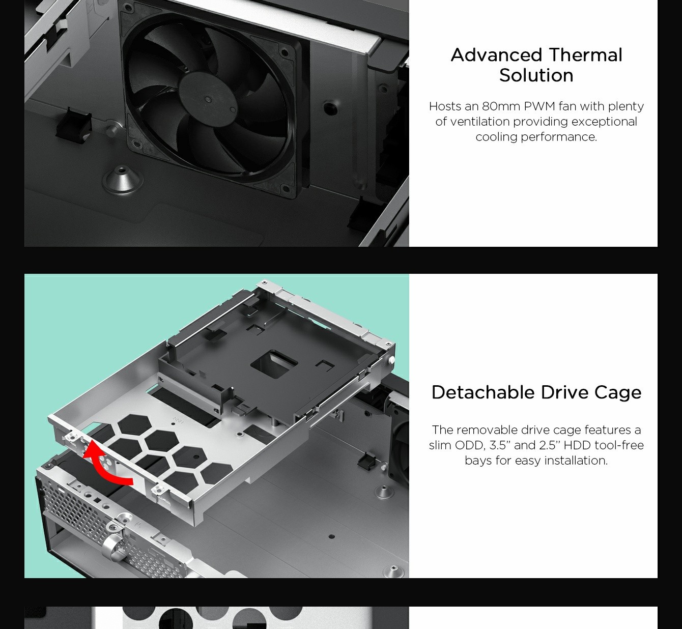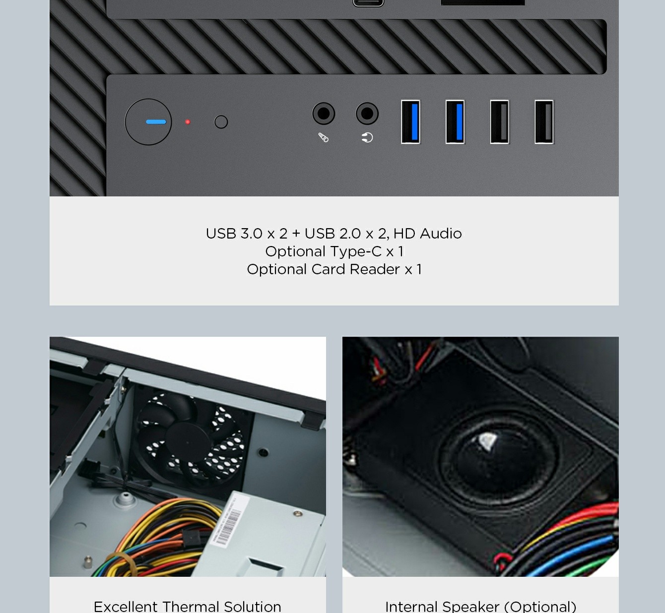 | Cooling Fan Support | Front | 1x8025mm(Fan optional) |