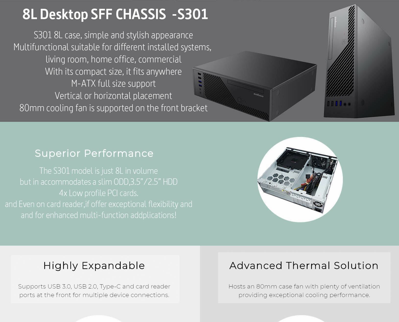 | Case Type | S.F.F Slim Chassis, Fully tooless design(Ultra Small Form Factor) |