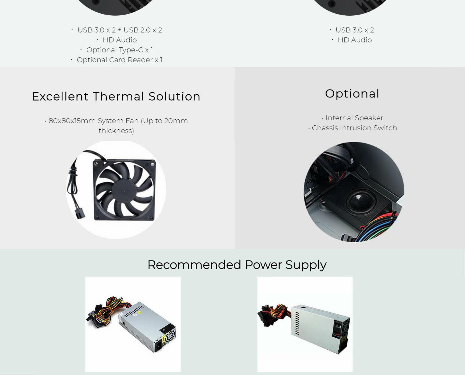 | Thermal Solution | Front fan: 80x80x15mm*1(Up to 25mm thickness) |
