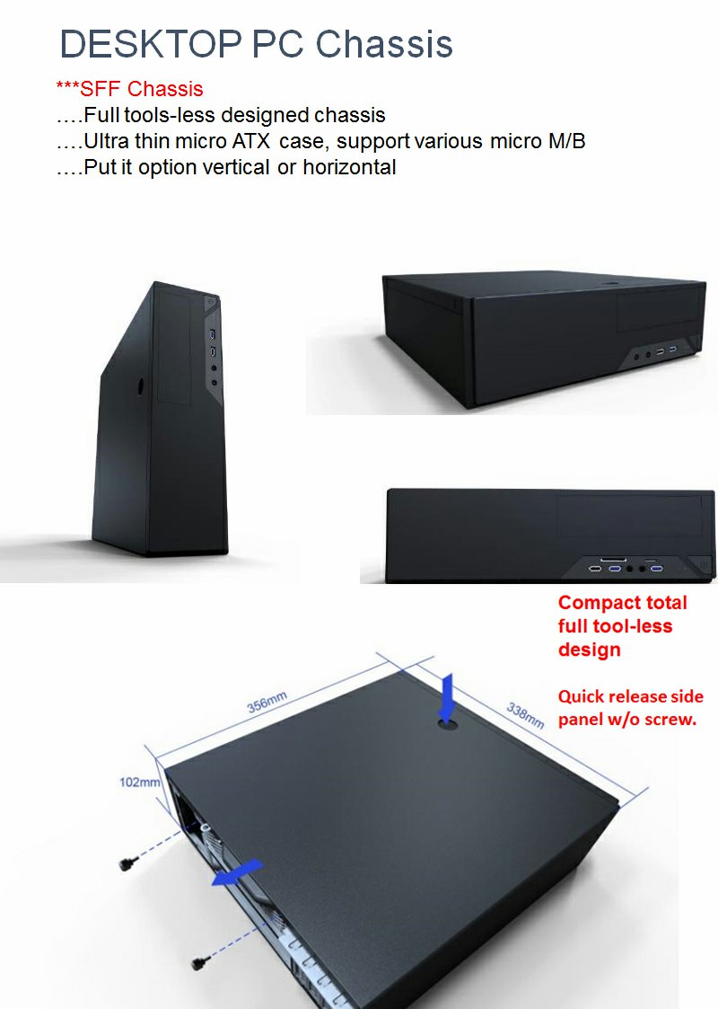The Sohoo S501 slim desktop case is notably strong for its modest size, creating the perfect case for System Integrators.