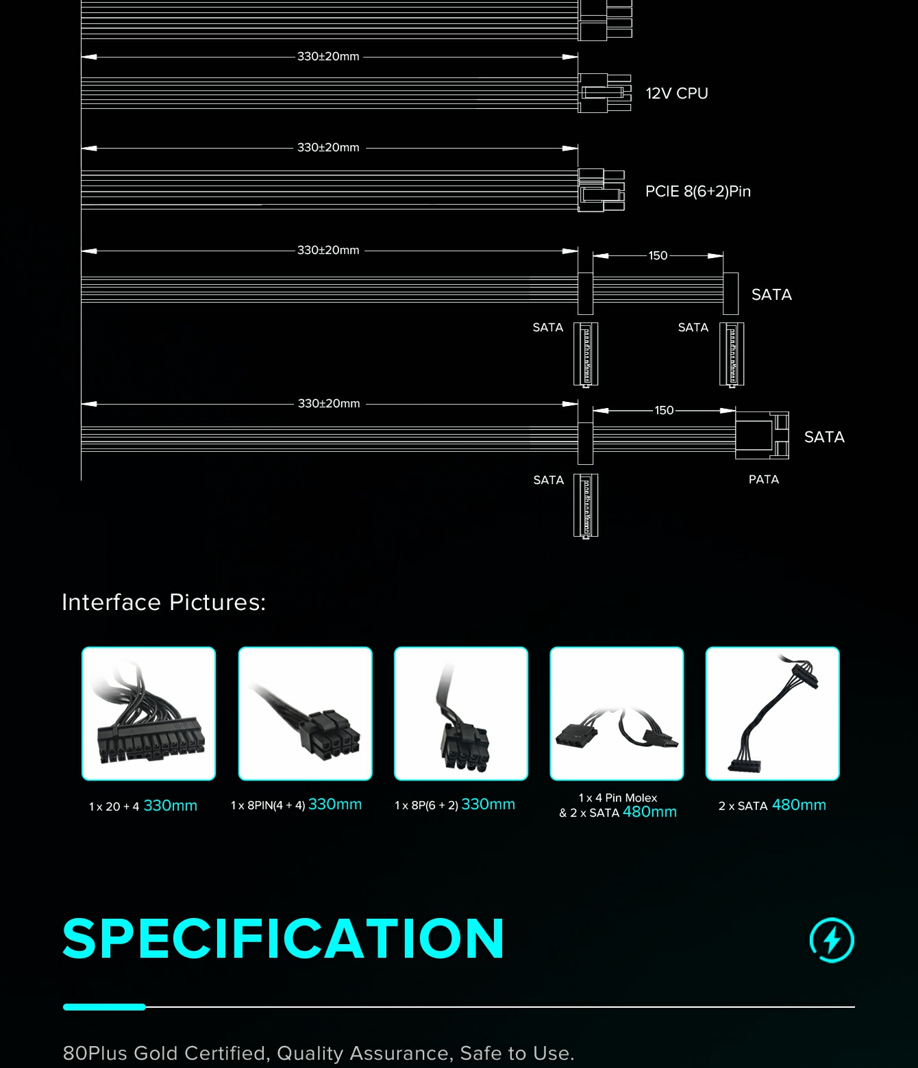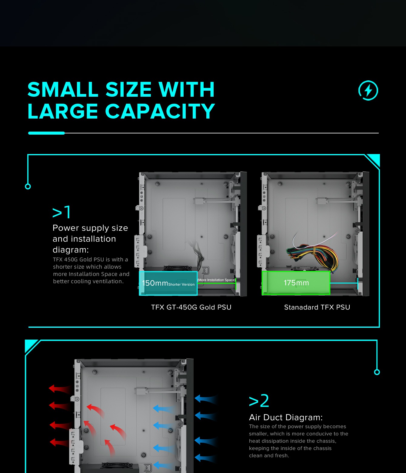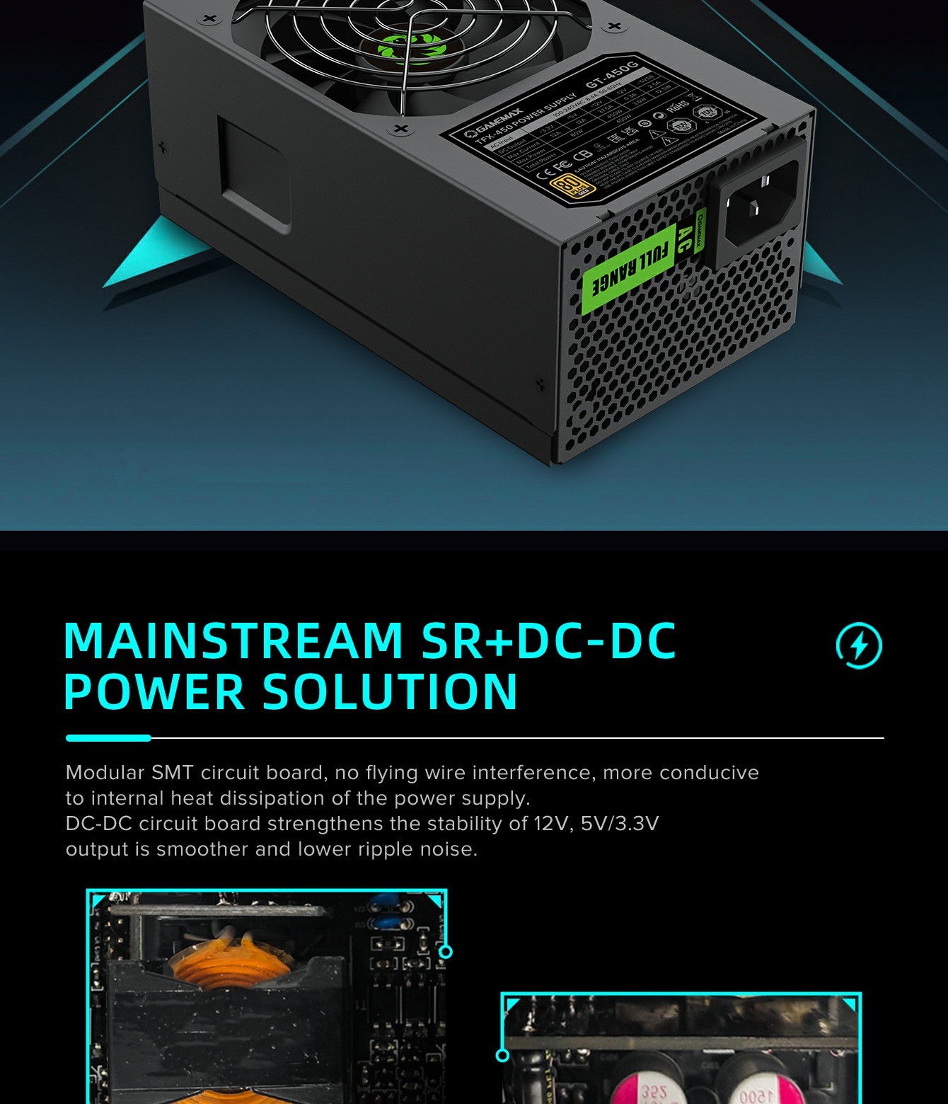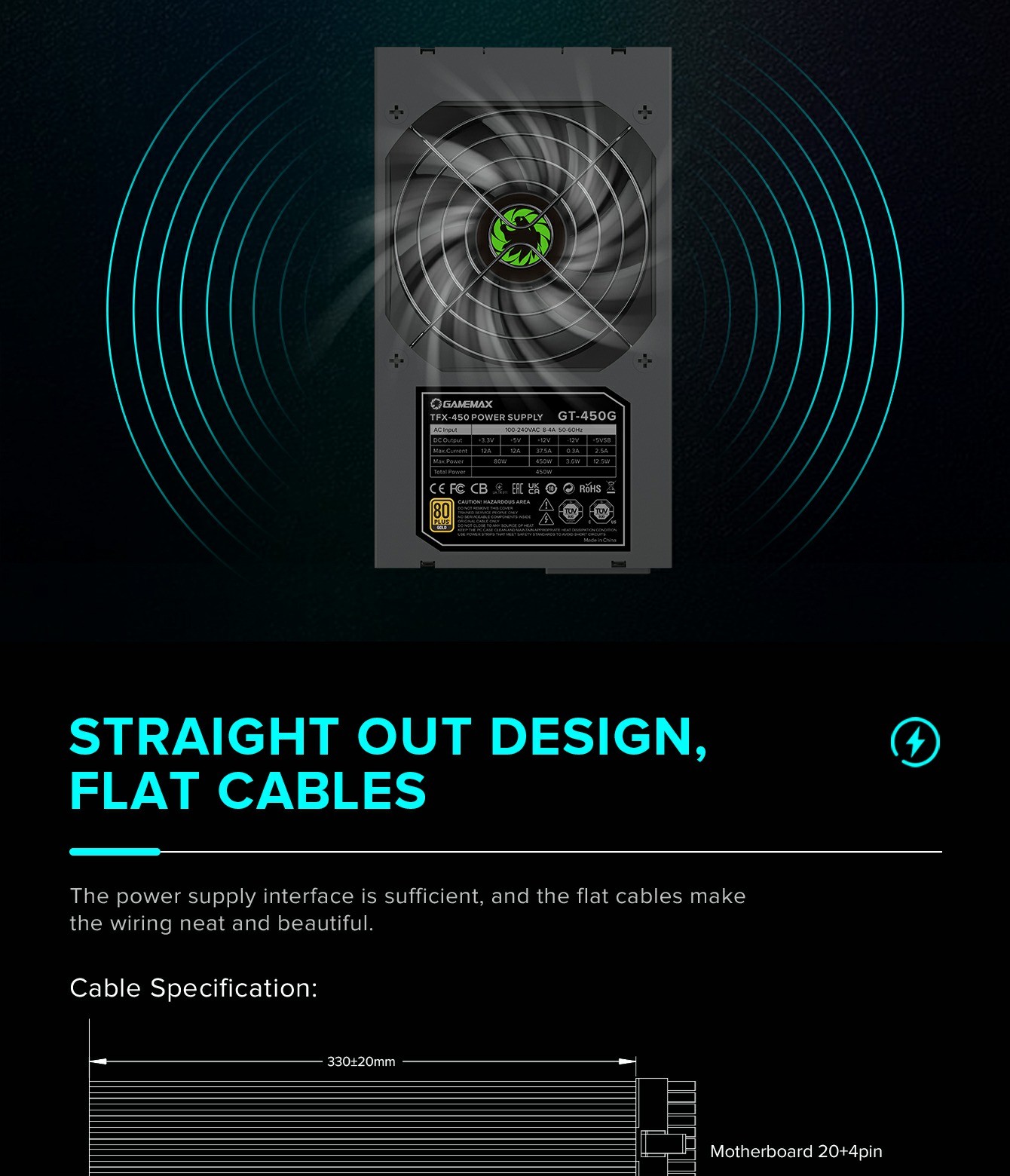 TFX 450 Gold, is certified for 80 PLUS Gold, this active PFC unit runs at a max of 90% efficiency,