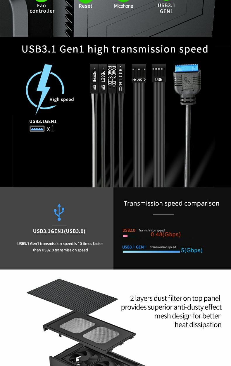 2 front USB 3.0 ports - up to 5 Gbit/s SuperSpeed transferring rate