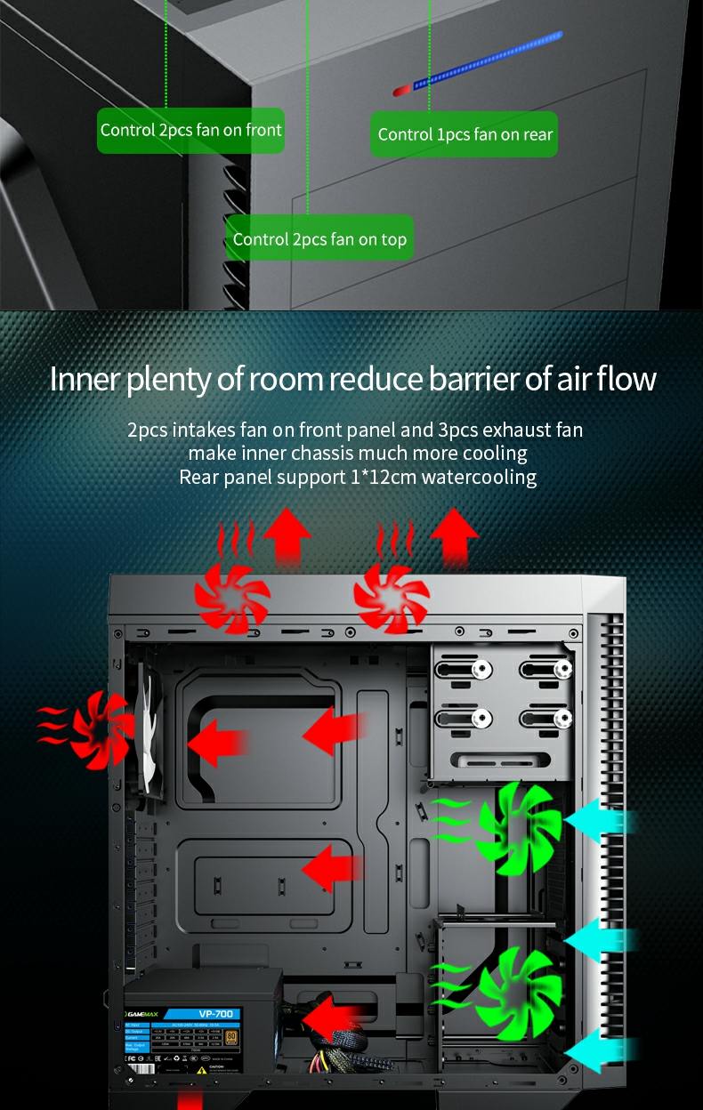 Advance cooling system – includes 3 fans, and 3 additional fan mounts