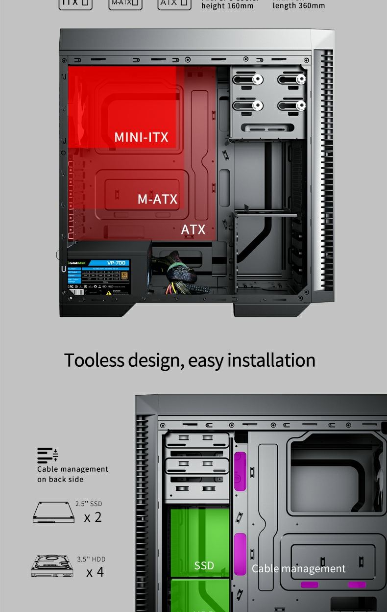 Tool-less 5.25” and HDD bays
