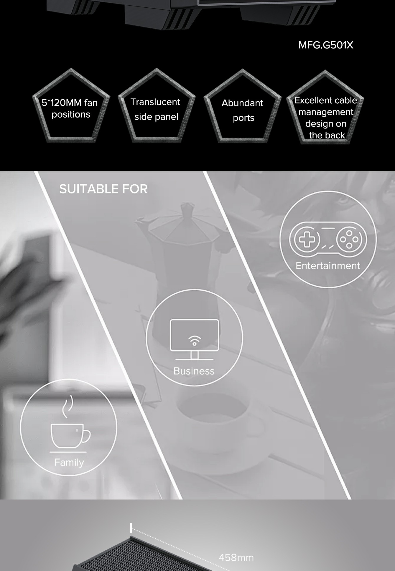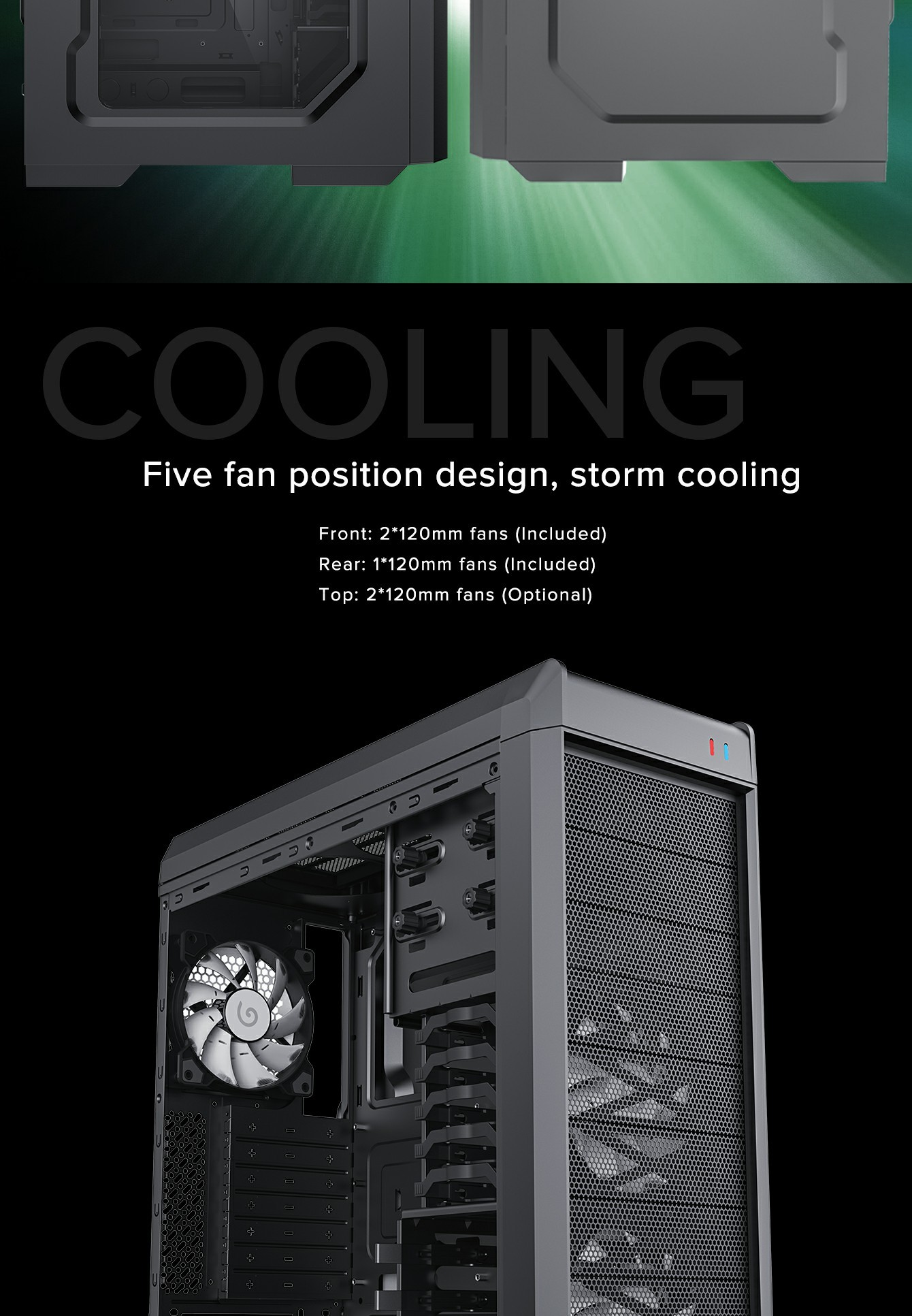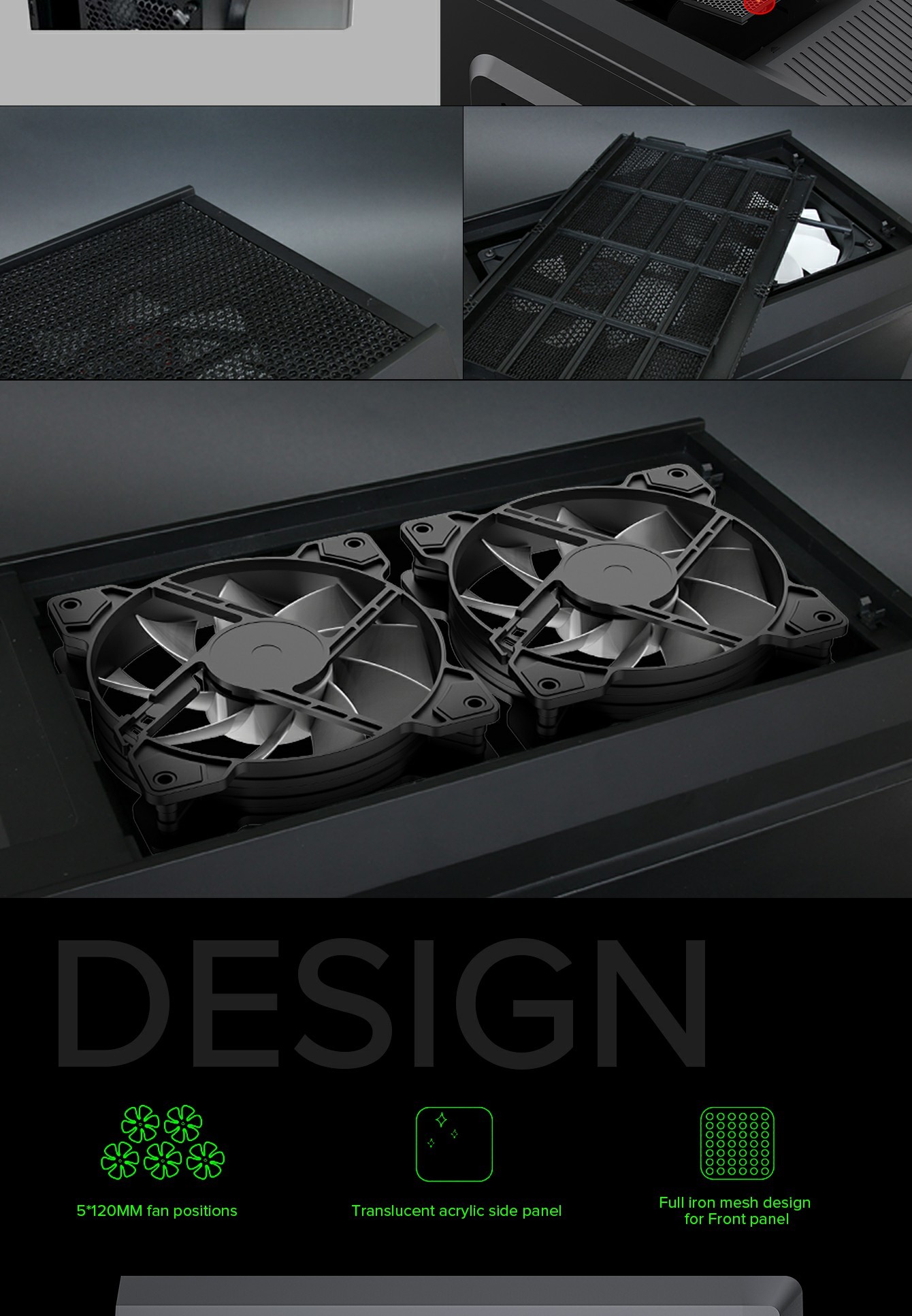 Cooling system - Supports 7x120mm fan on the front ,top, side and rear