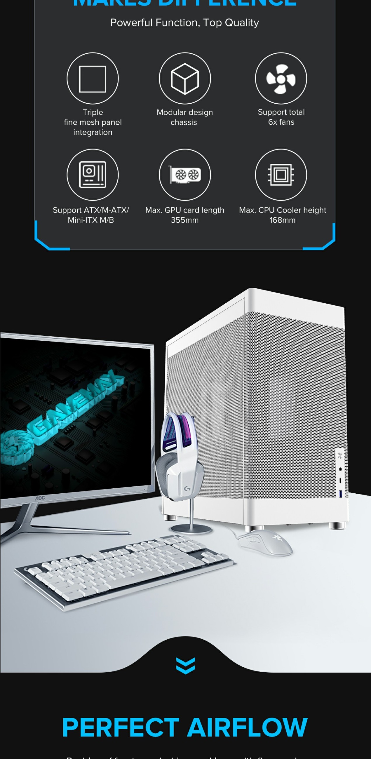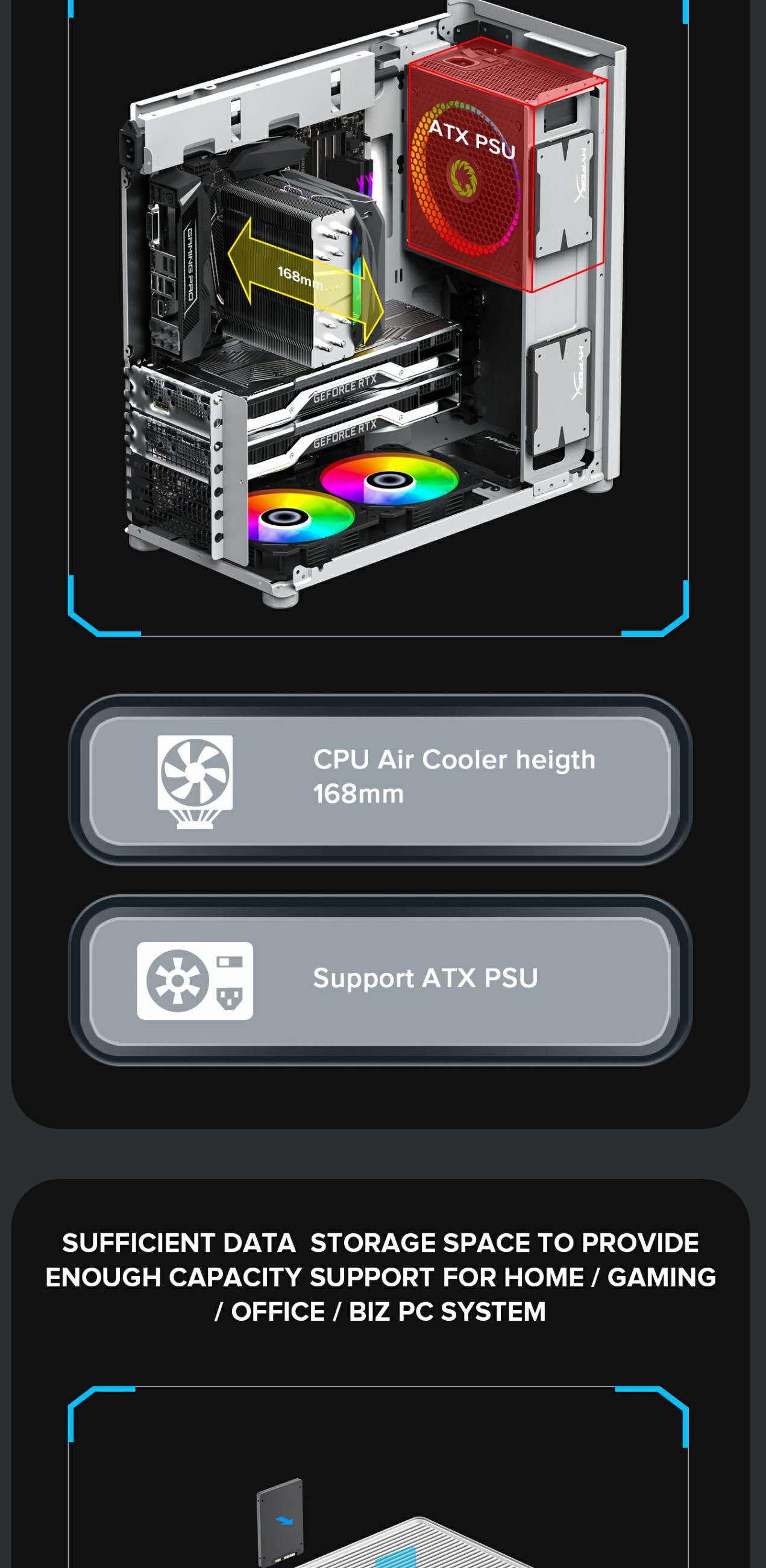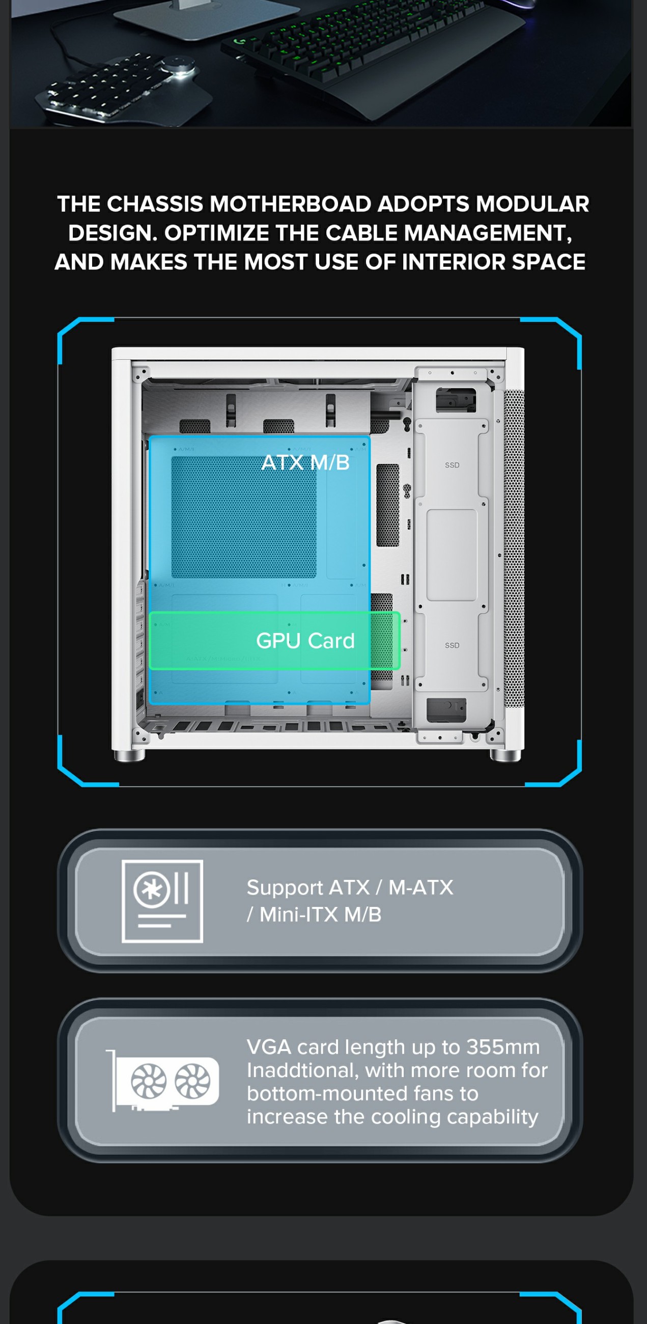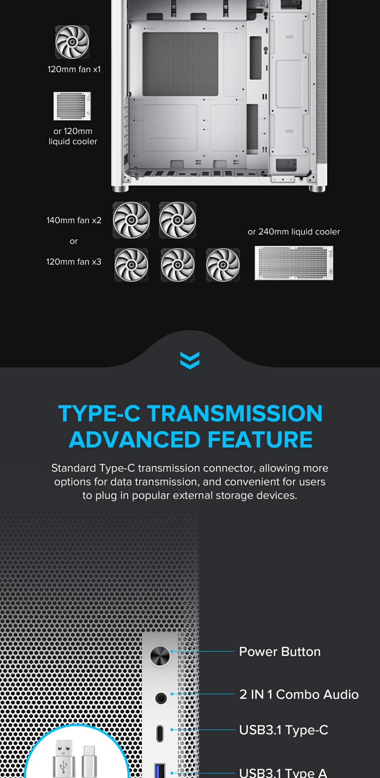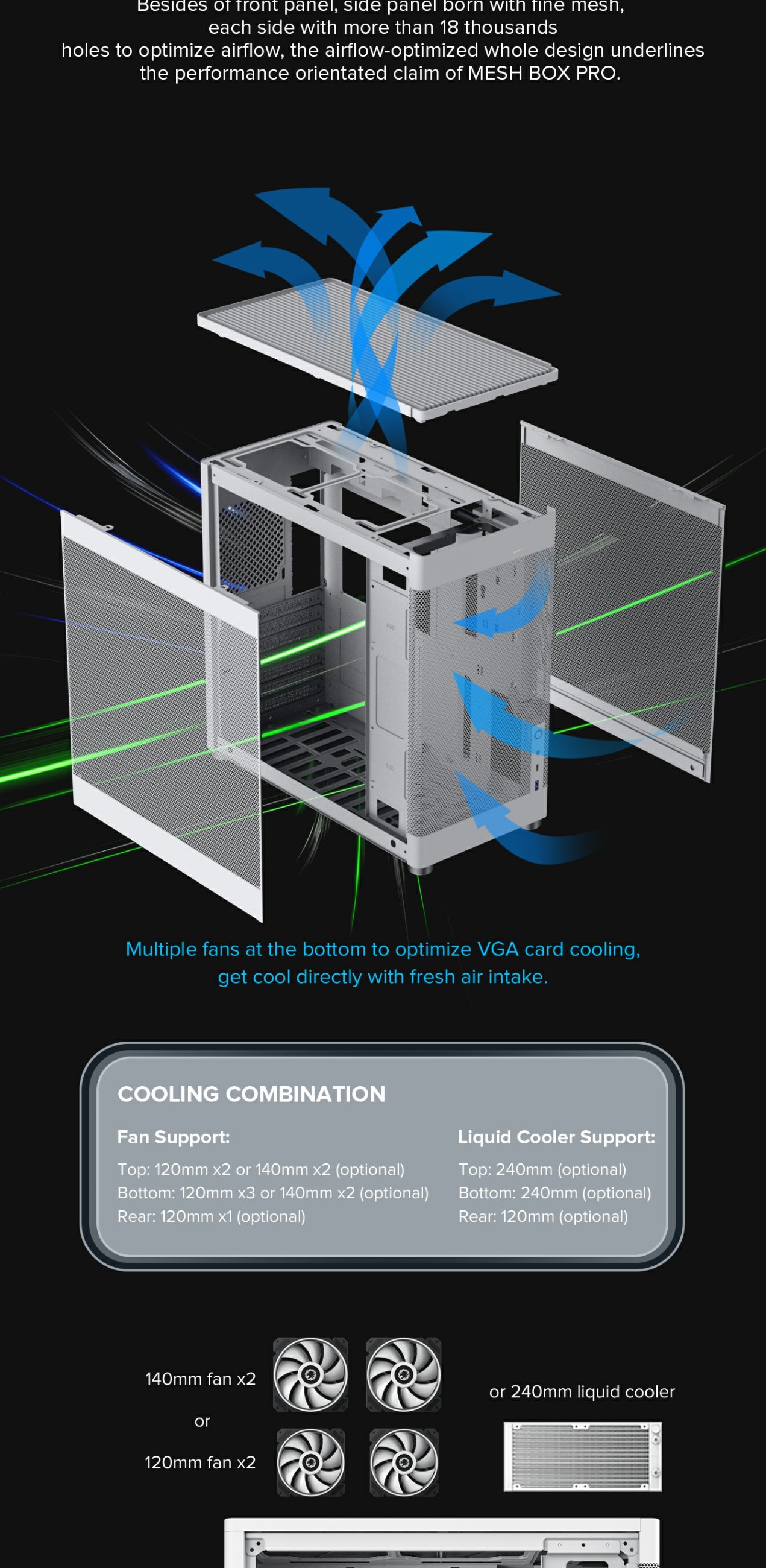 | Bottom | 3x120 or 2x140mm (Fan optional) | |
