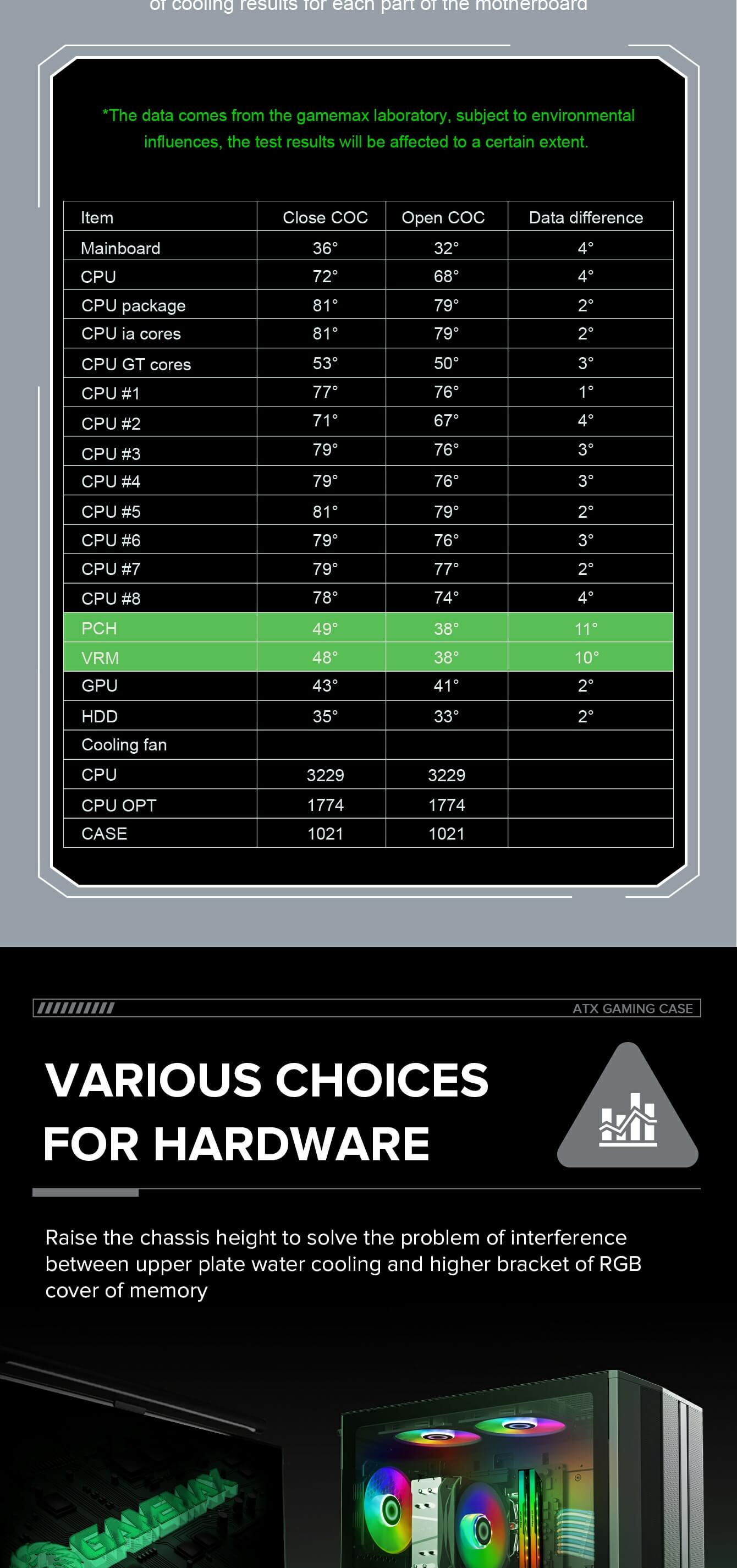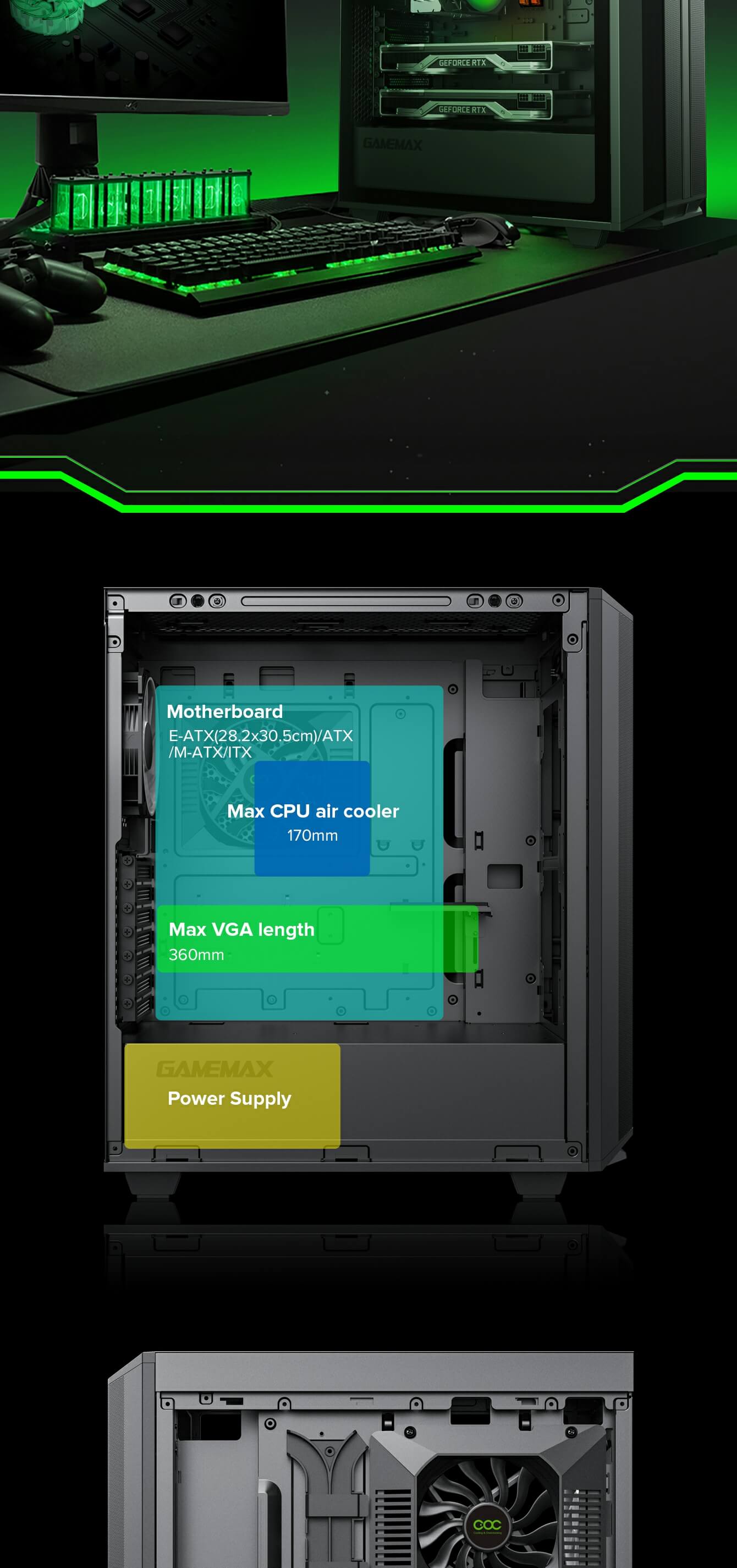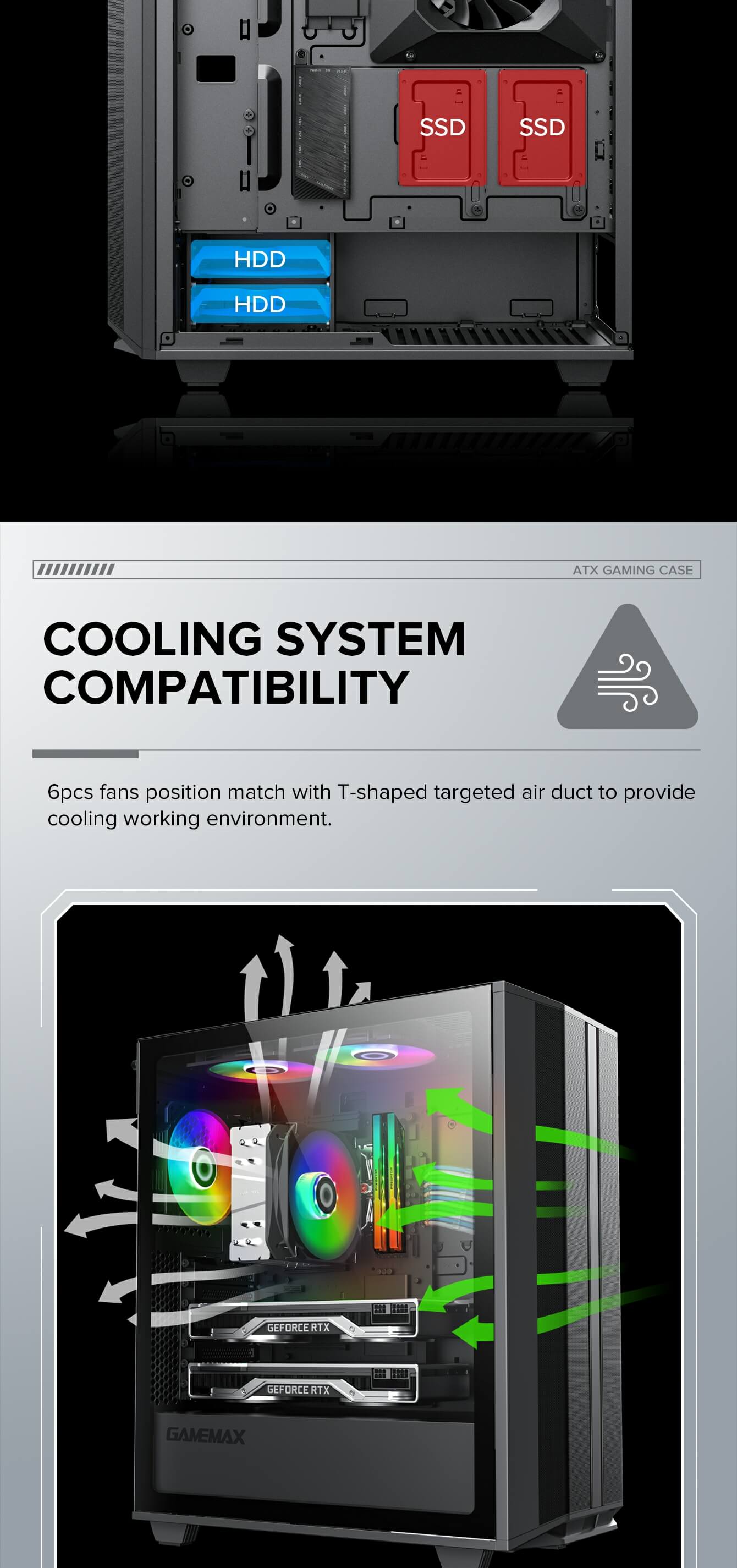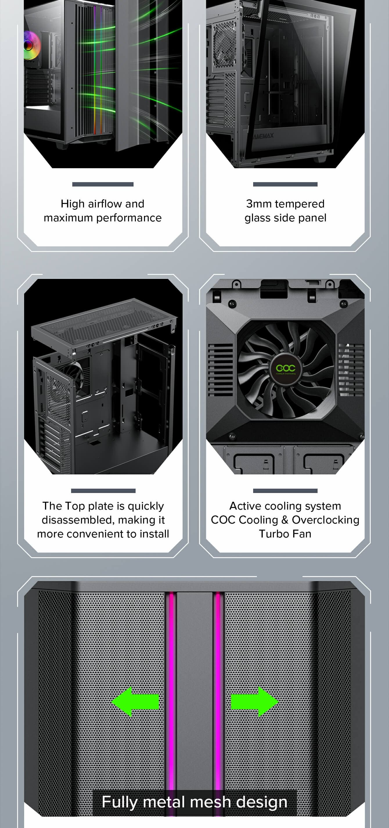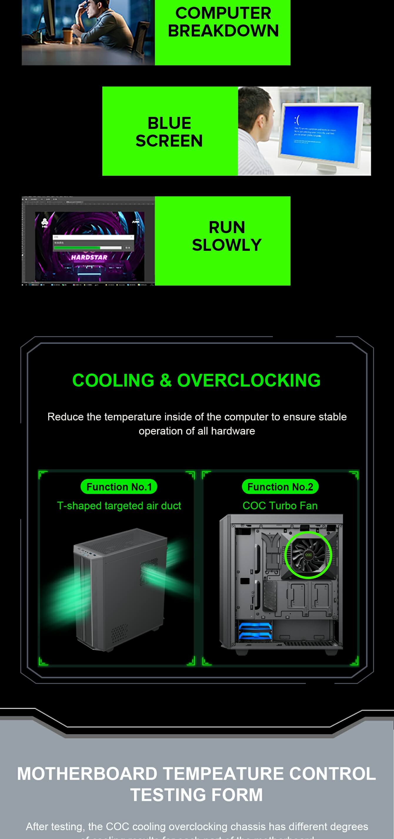 COC (Cooling & Overclocking) turbofan, T-shaped directional air duct, active cooling system, exclusive patented design