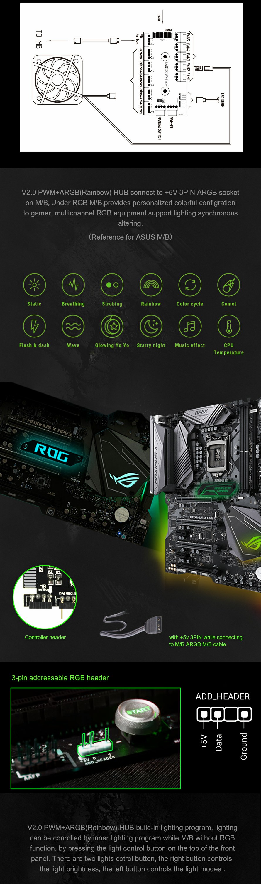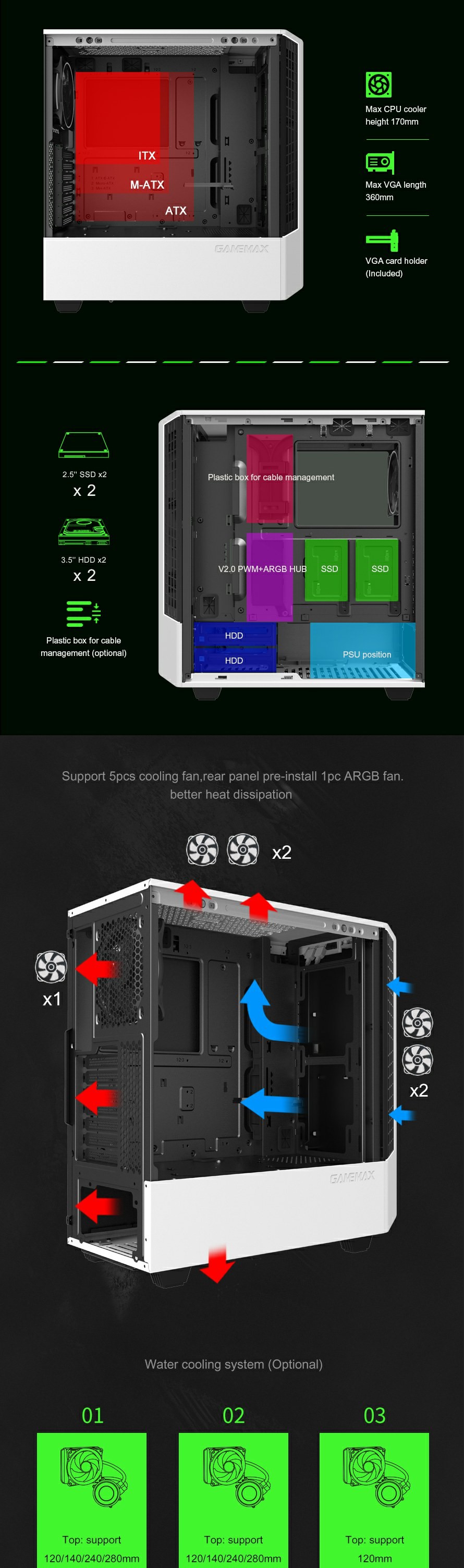 You can effortlessly control ARGB lighting and fans via GameMax V2.0 PWM+Rainbow HUB controller pre-installed, while Adaptive Noise Reduction optimizes via PWM controls.