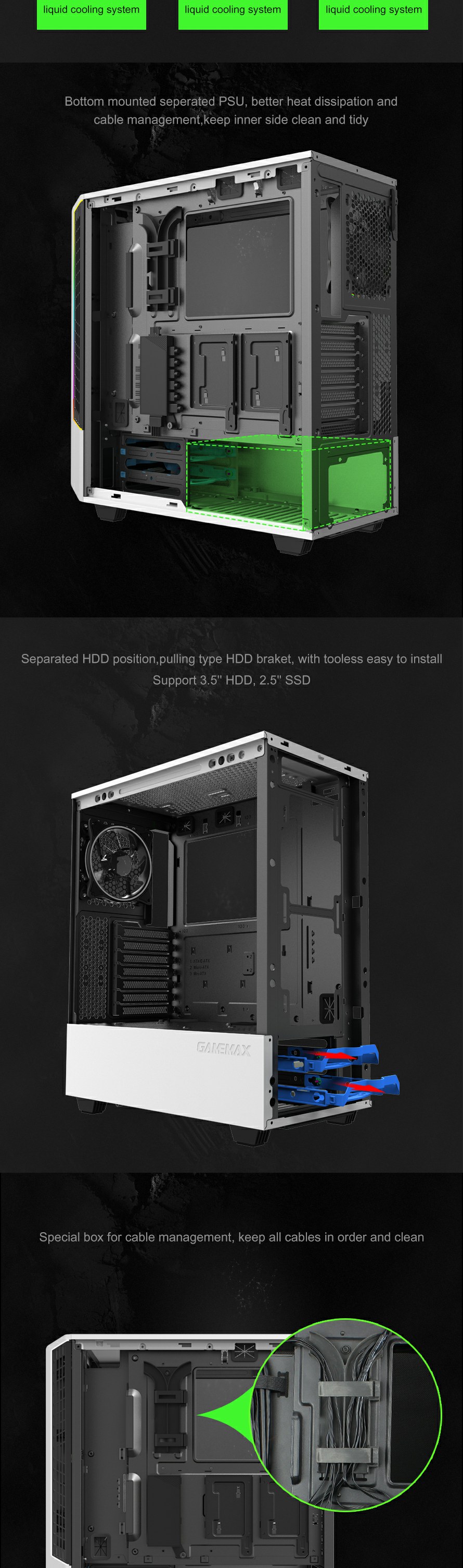 8002 MID Tower gaming ATX Case,Without much effort, the 8002 Gaming case is simple and elegant design, which allows users to create a clean and beautiful system.