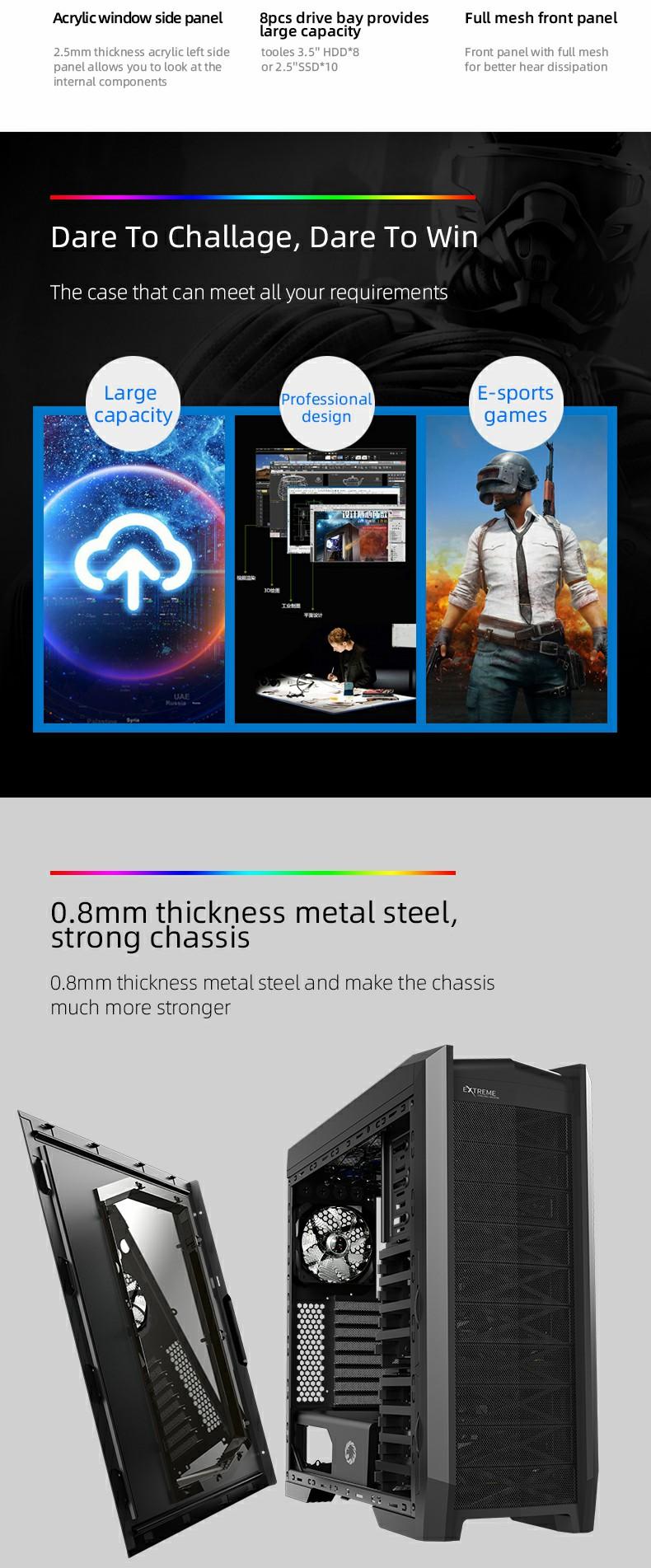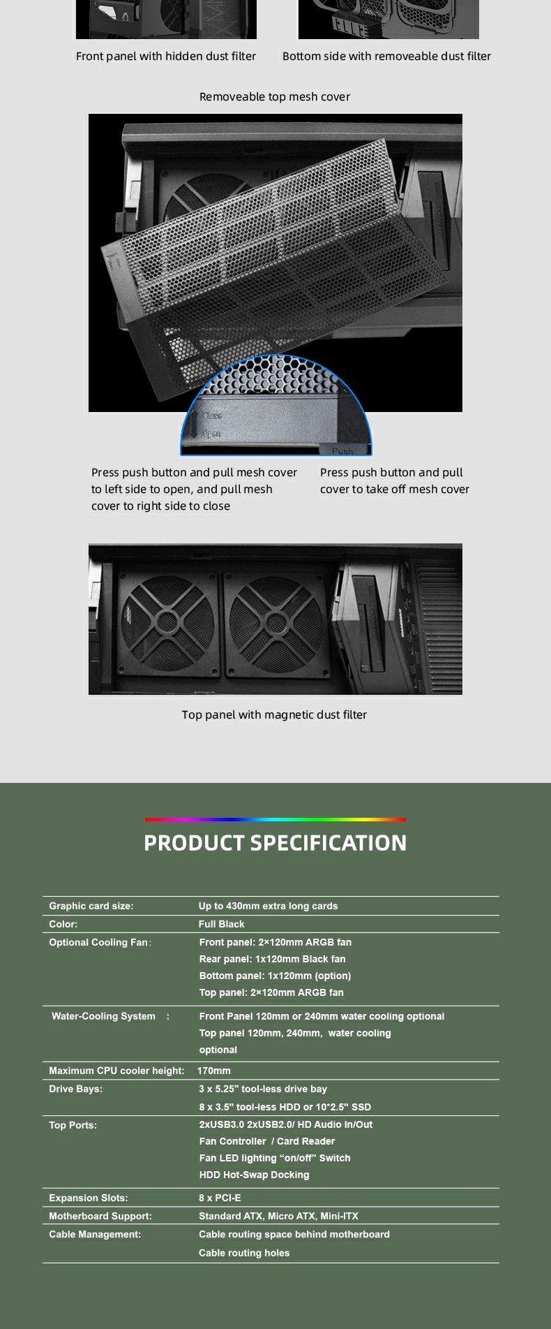 Super space design compatible for All ATX/MATX/ITX mainboard,Meshed bay covers