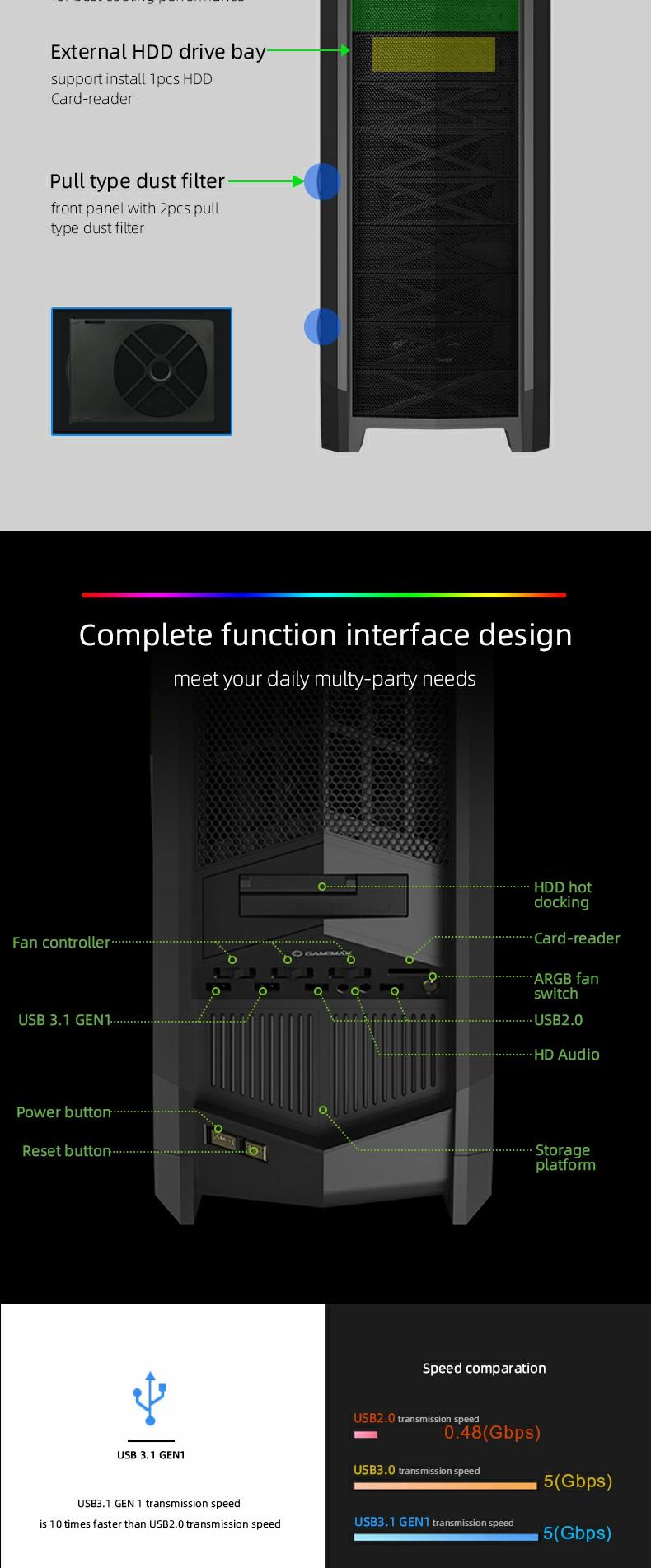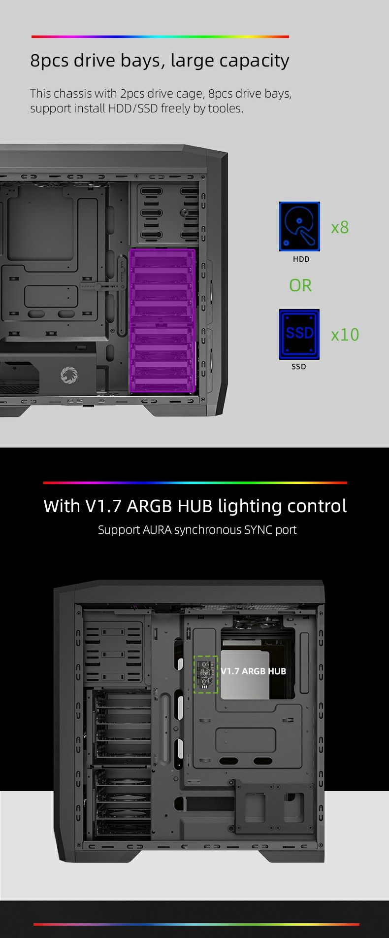 Support Standard ATX switch power supply, and can be mounted up to 420mm graphics card.