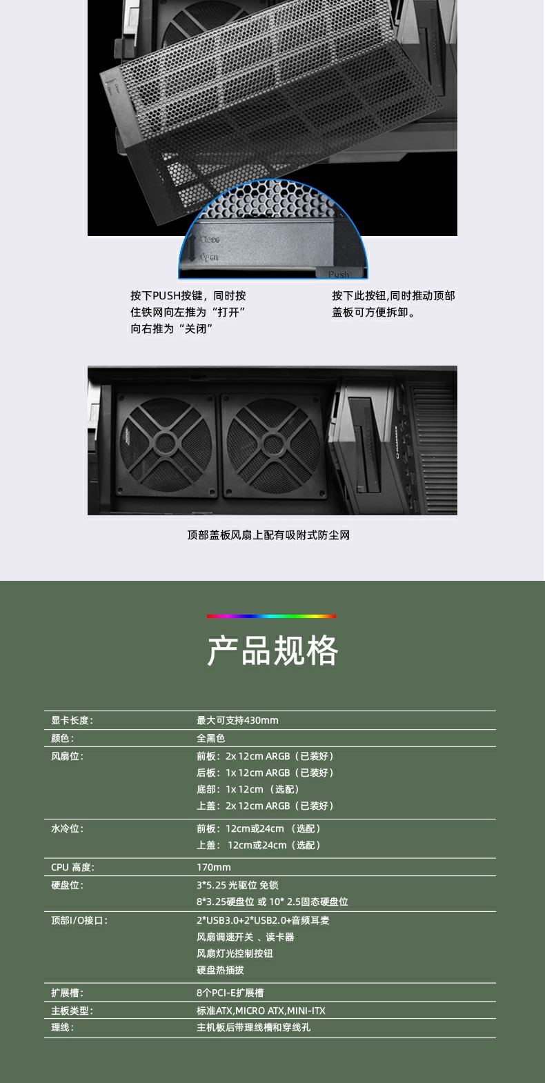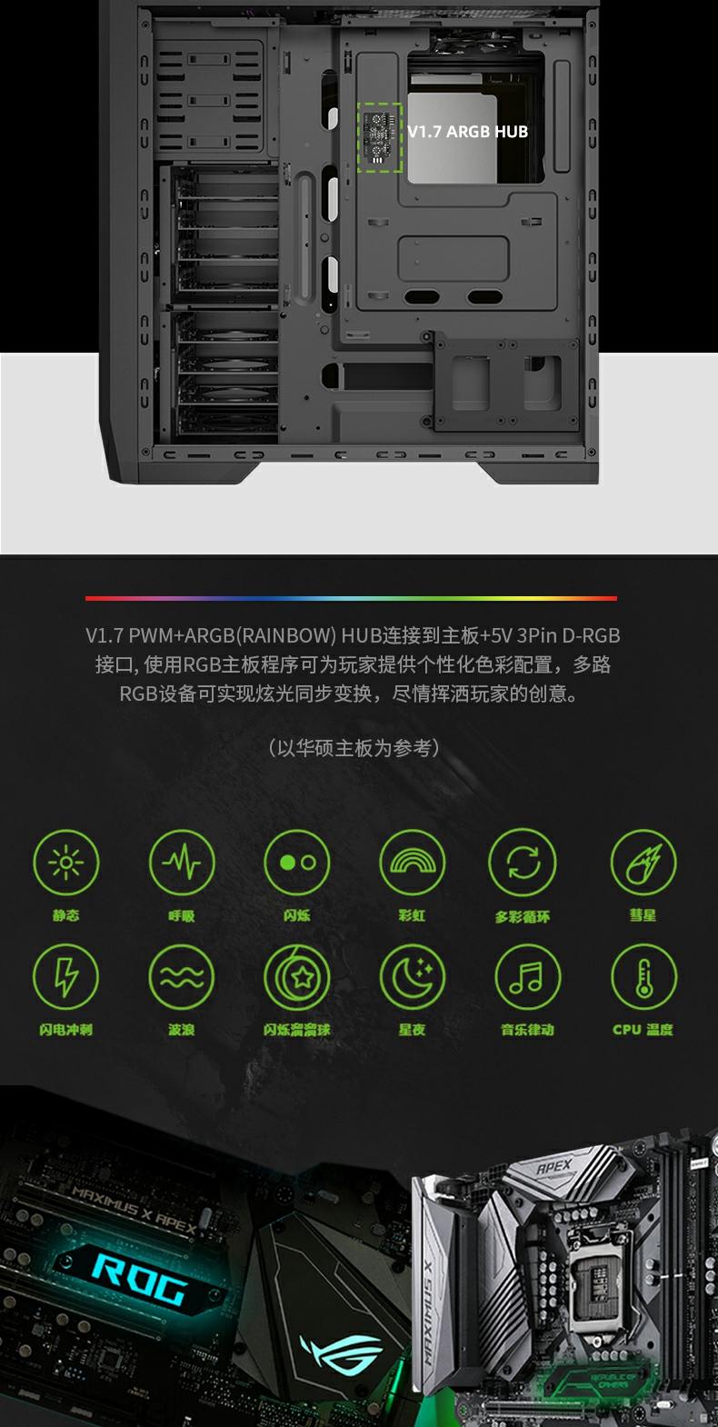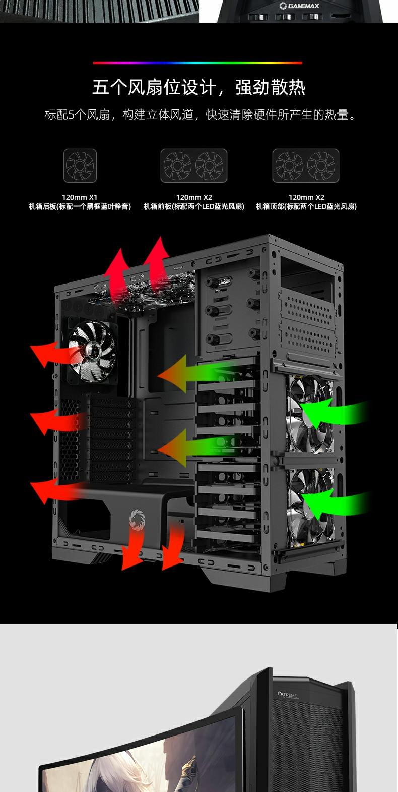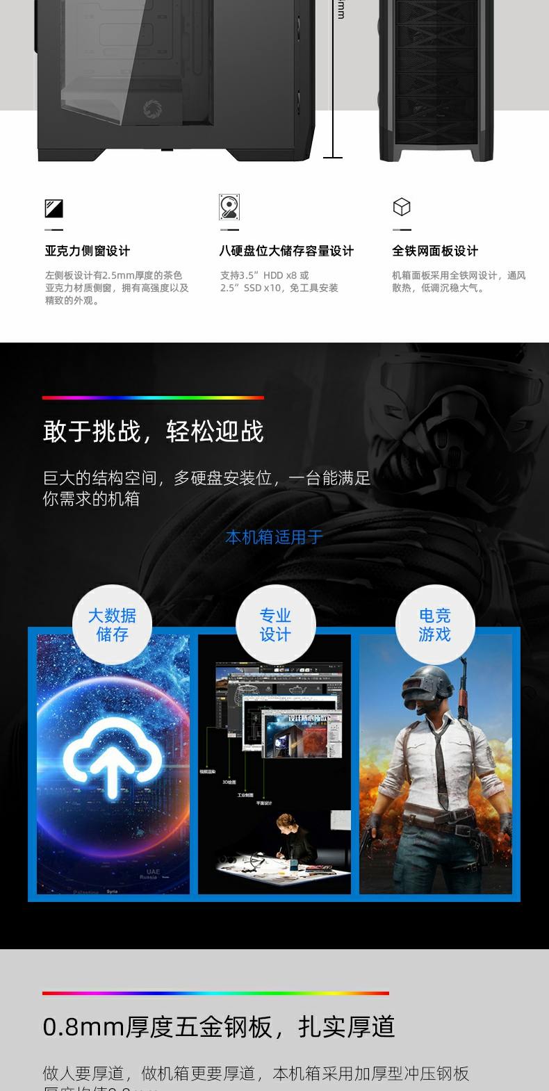 龙骑士机箱 风扇调速走背线长显卡防辐射台式机箱