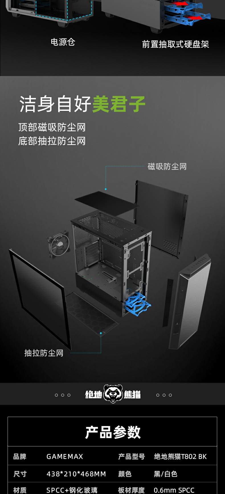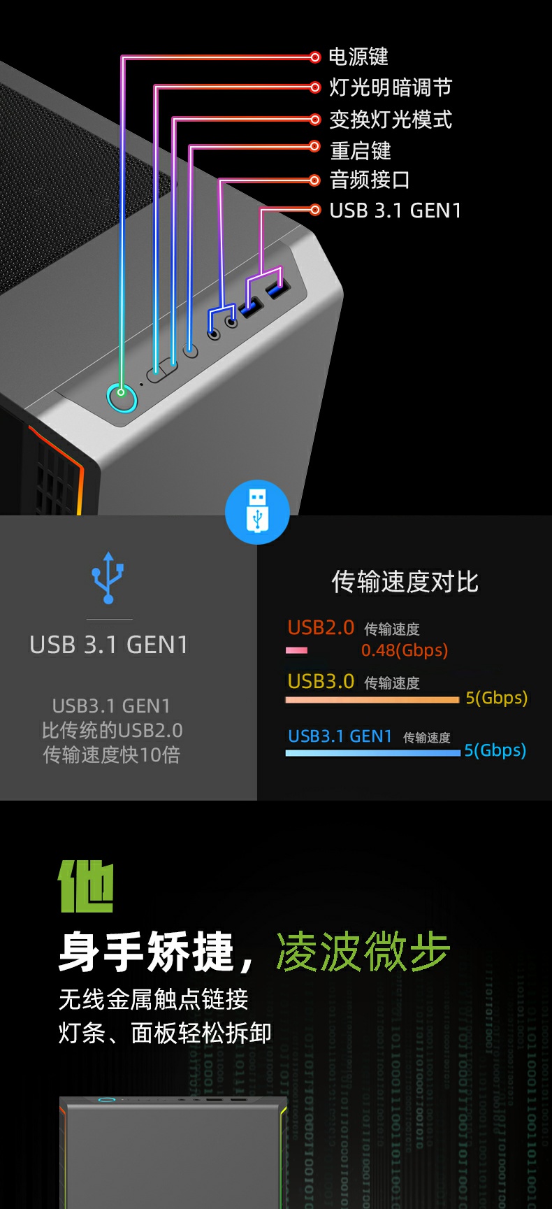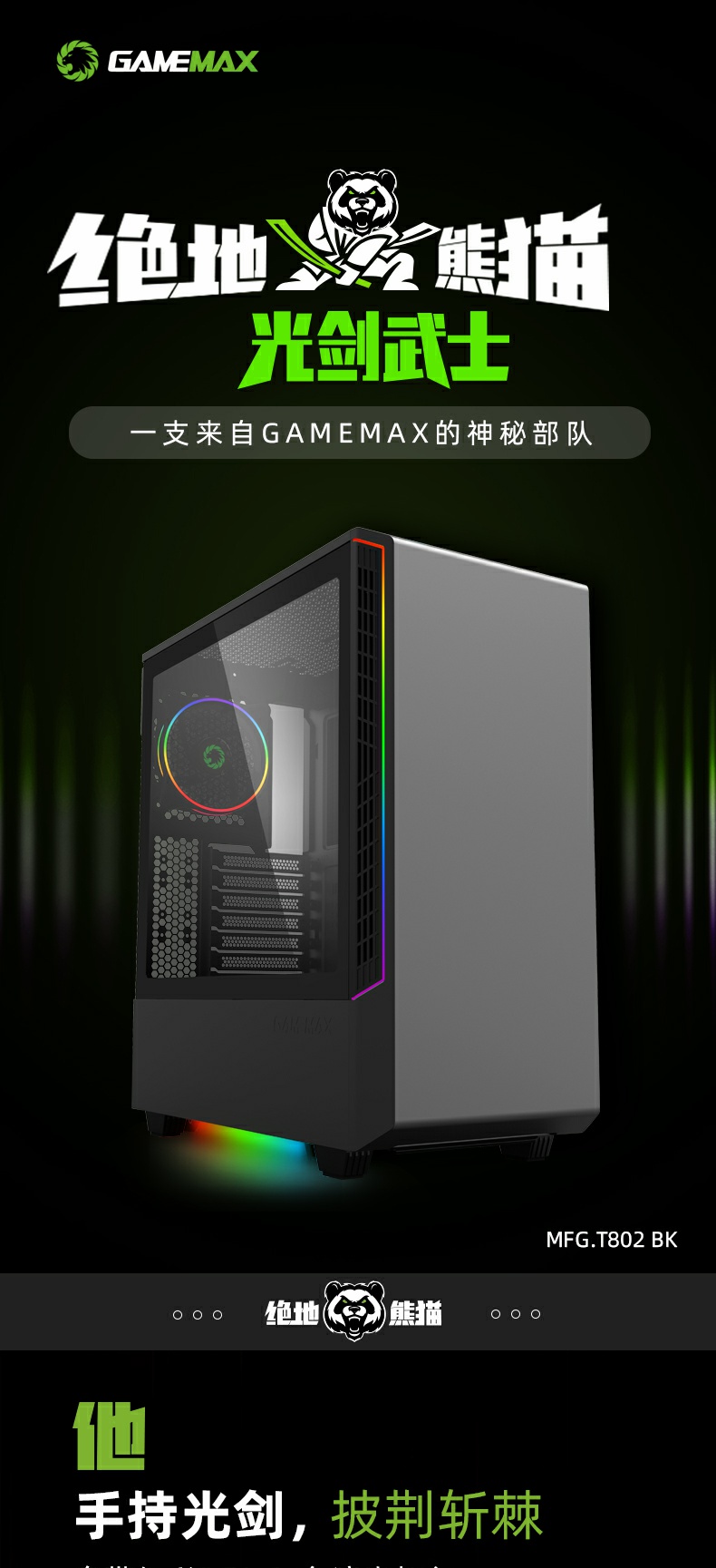 前面板ARGB灯条,凸现质感,并配置2侧进风防尘设计,使系统运行在安静高效的散热空间。
