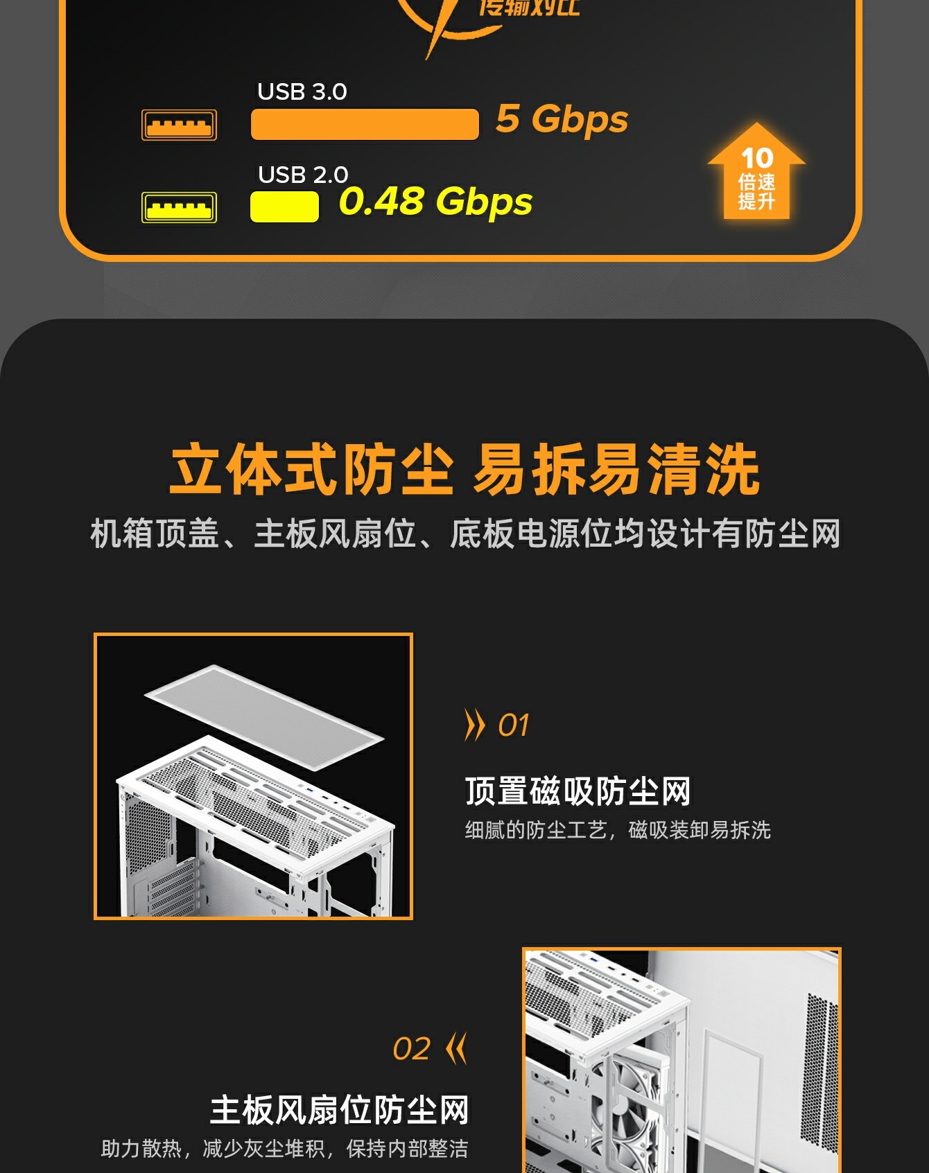| Dust Cover | Bottom, right side panel and top cover with dust filter | |