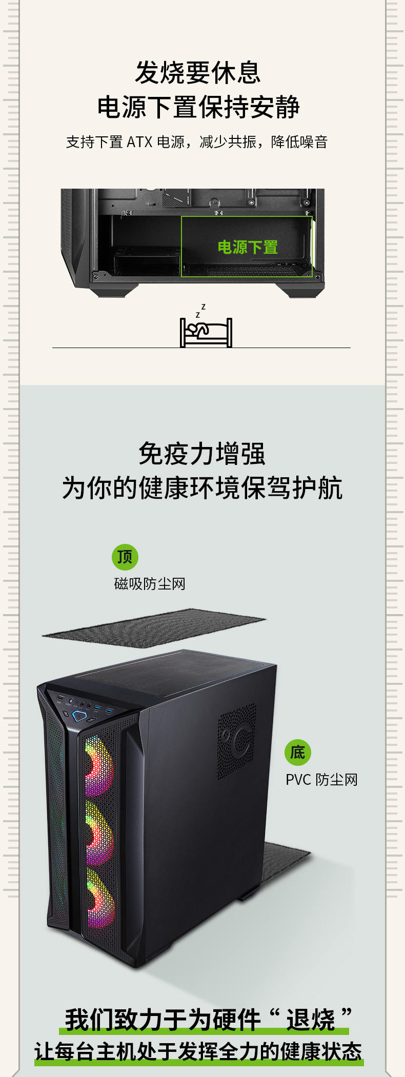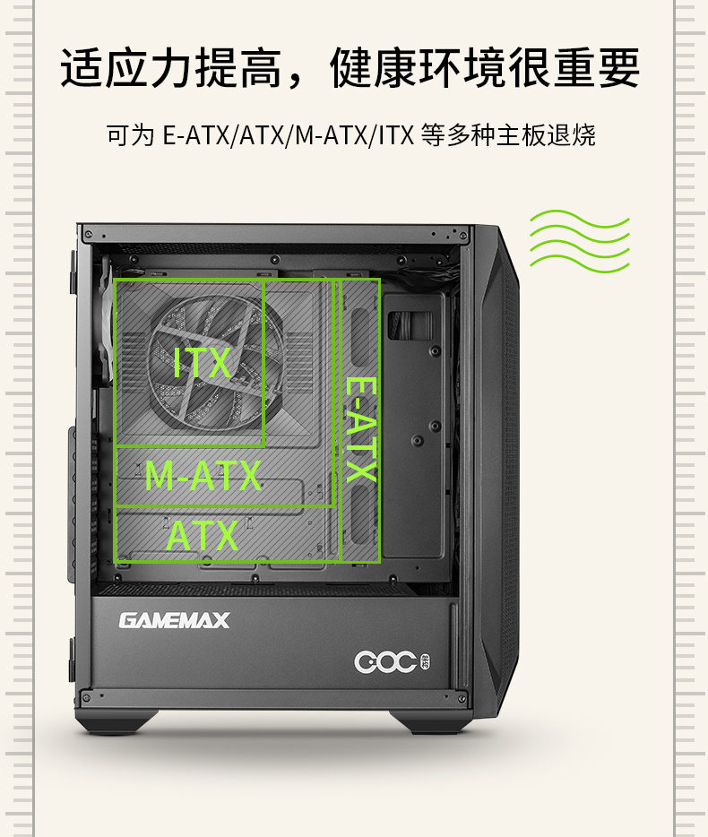 3608有"T" 形靶向式风道,通过具有针对性的全新风道,为硬件、主板降温,避免主板电压模组“发烧”才能有效治疗崩溃,蓝屏各卡顿问题。
