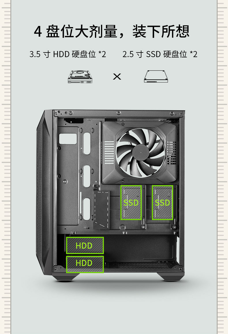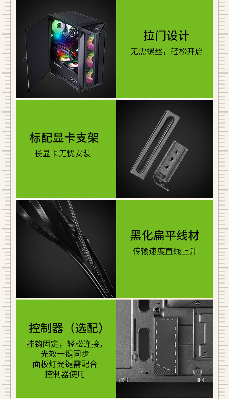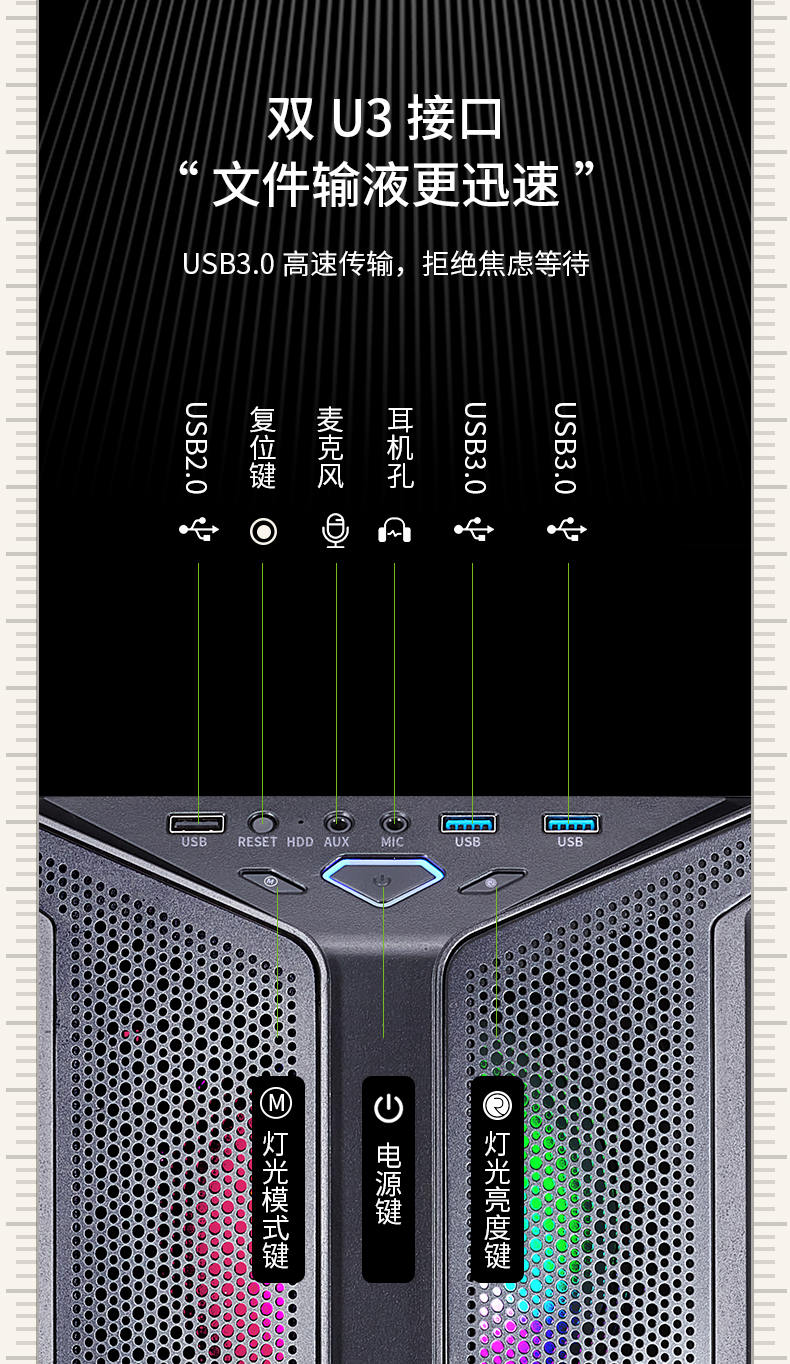 3608最多可支持8个风扇,电源仓可加装风扇,配合T形风道,为硬件带来健康的运行环境。选配有带有3针ARGB接头的光谱RGB集线器,可直接连接到您的主板,允许您通过主板提供的软件控制风扇和LED灯条同步。