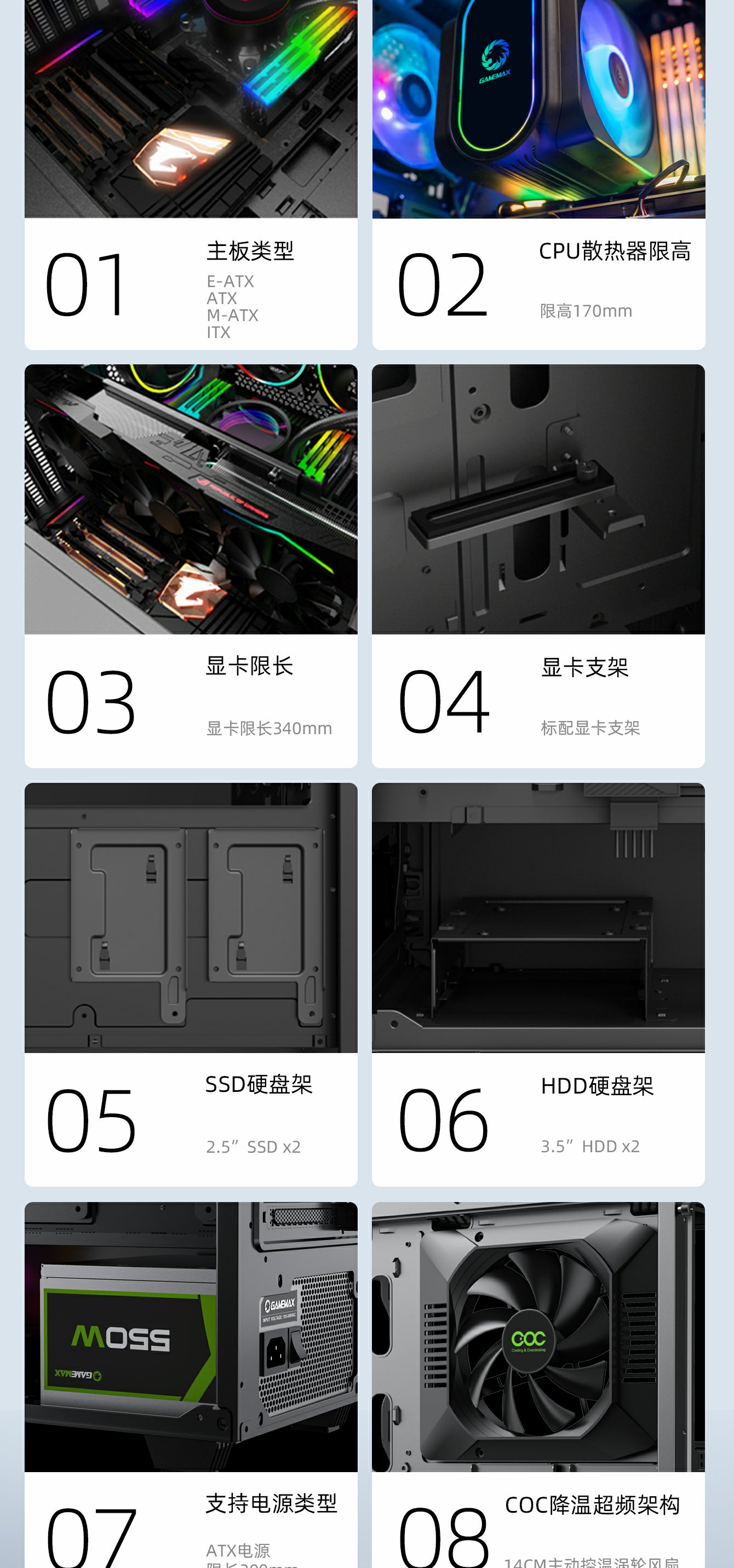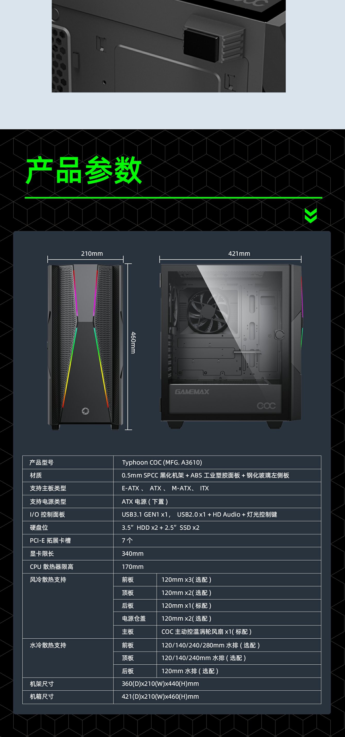 3610 ATX游戏机箱, 带有COC全新超频架构,控温涡轮,主动出击