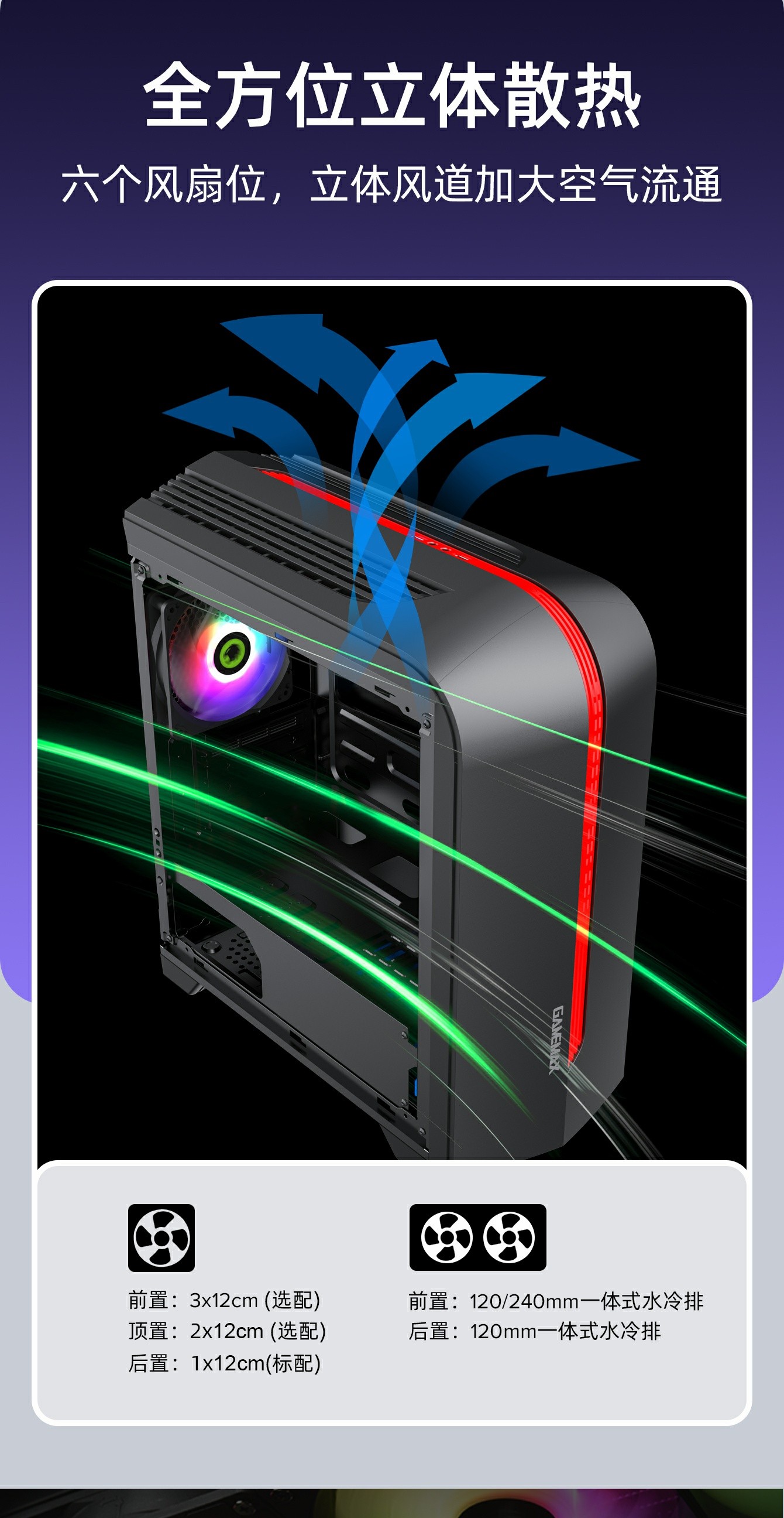 | 水冷 | 前板 | 冷排120mm*1,240mm*1 |