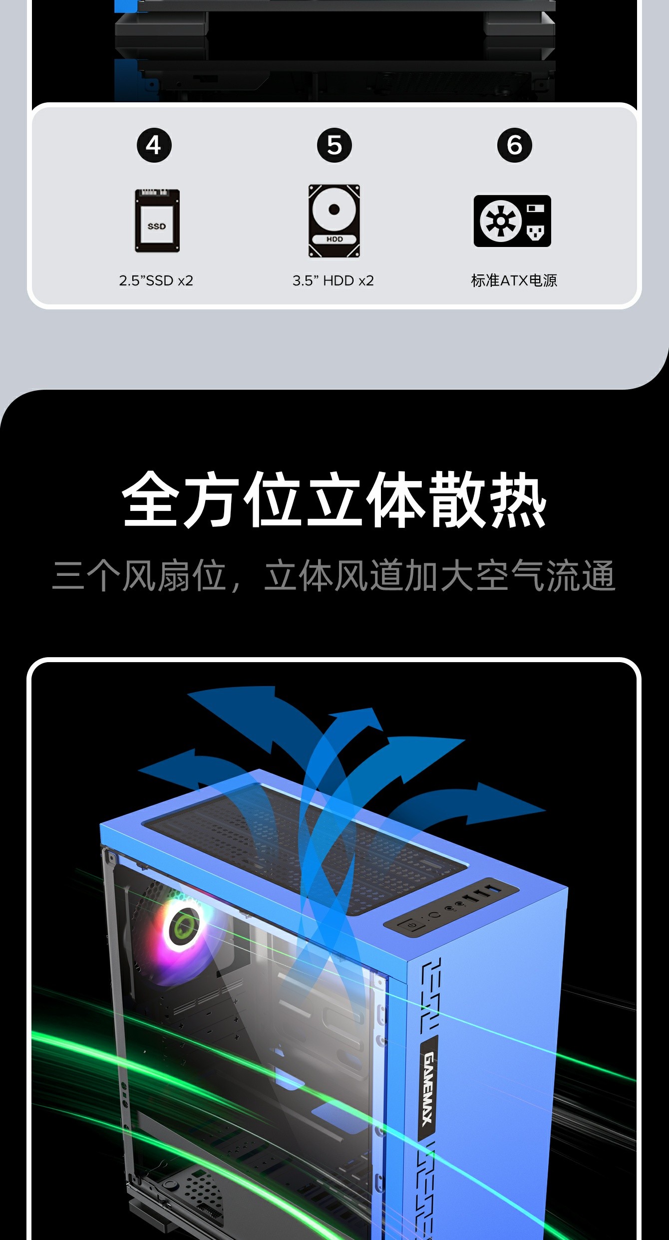 水冷散热系统:后板水冷散热系统:1*120mm 水冷