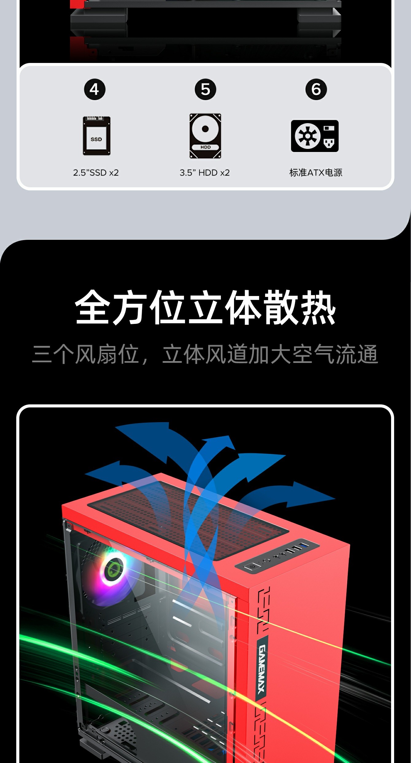 水冷散热系统:后板水冷散热系统:1*120mm 水冷