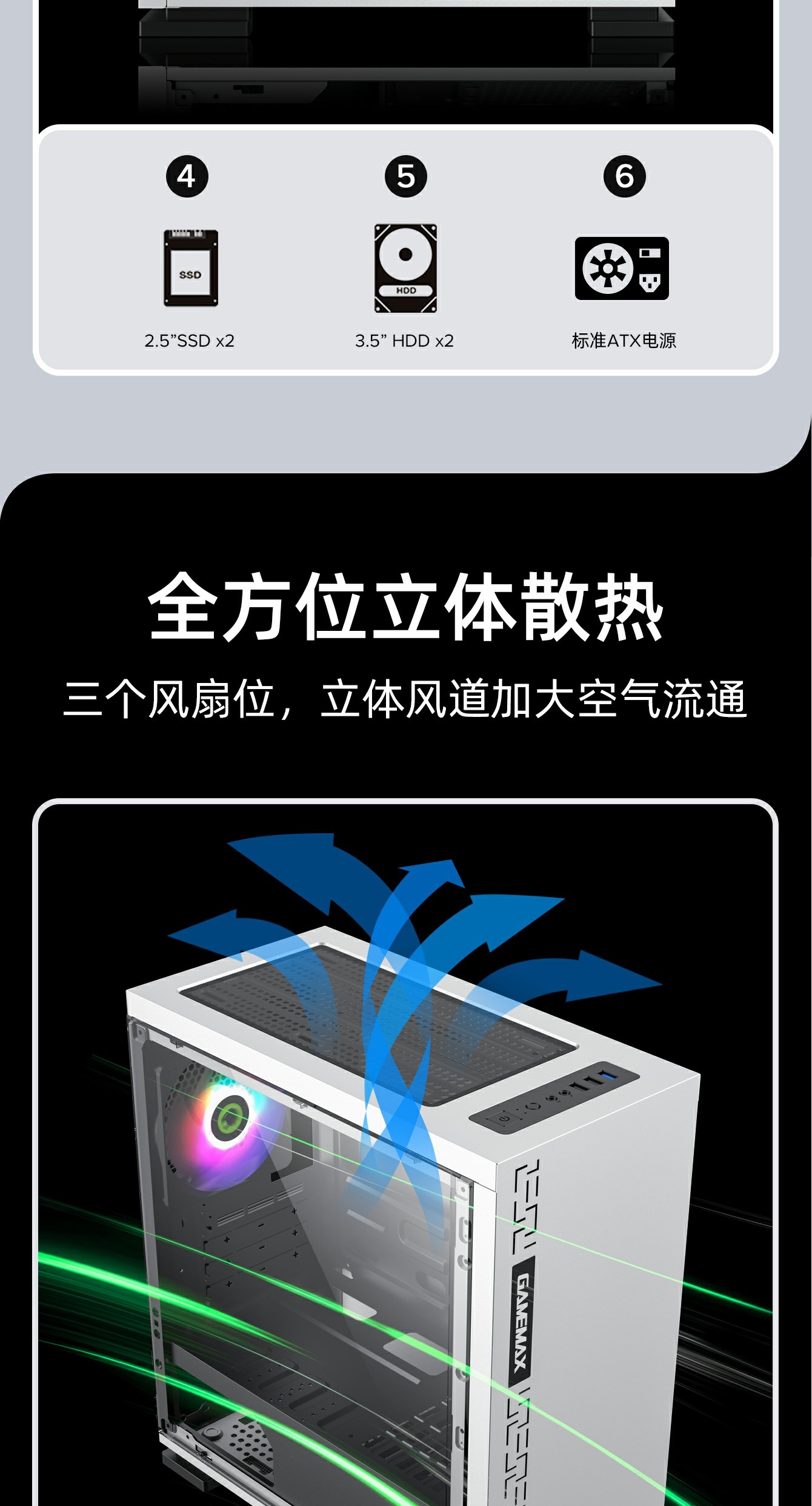 水冷散热系统:后板水冷散热系统:1*120mm 水冷