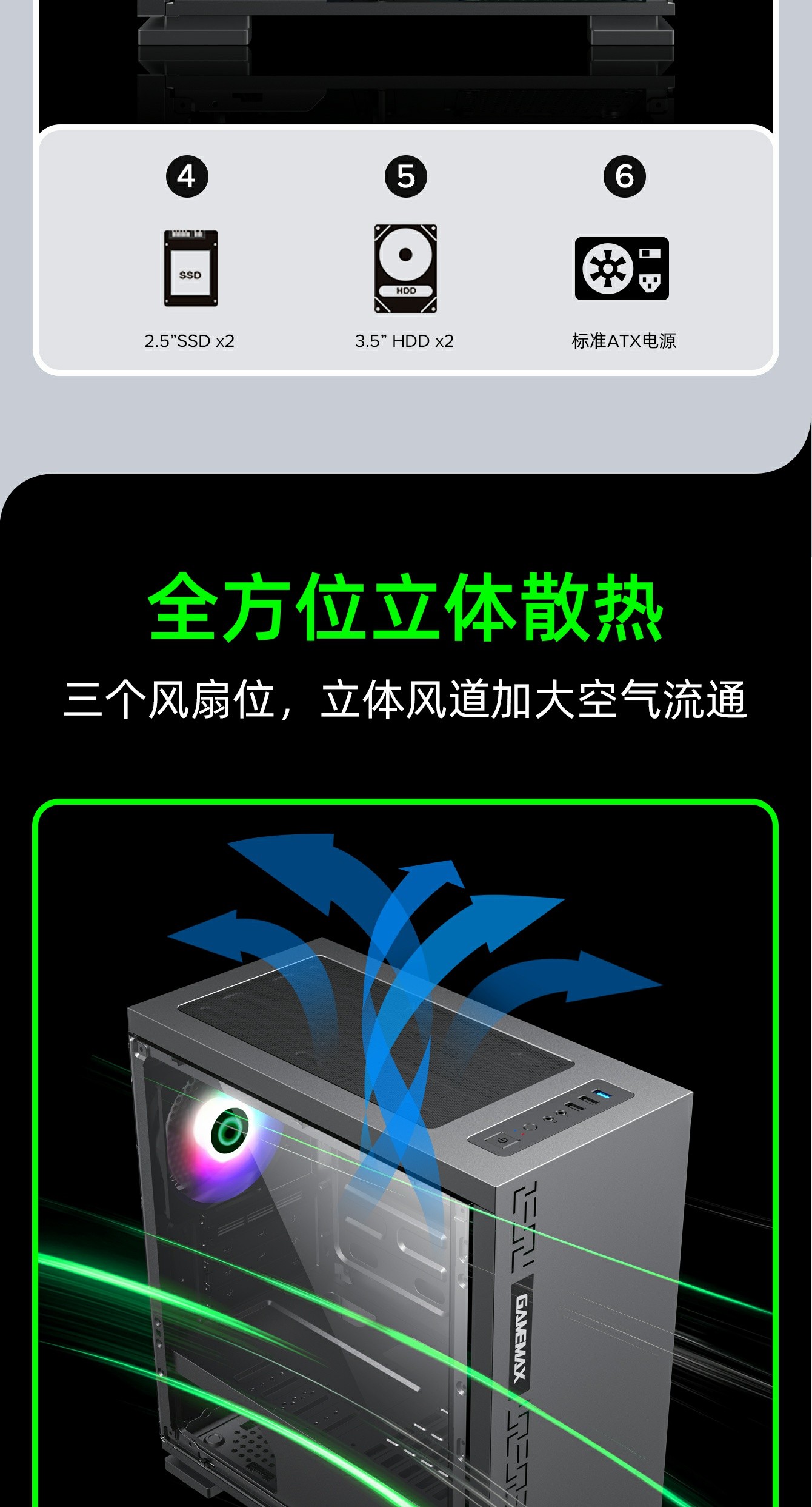 水冷散热系统:后板水冷散热系统:1*120mm 水冷