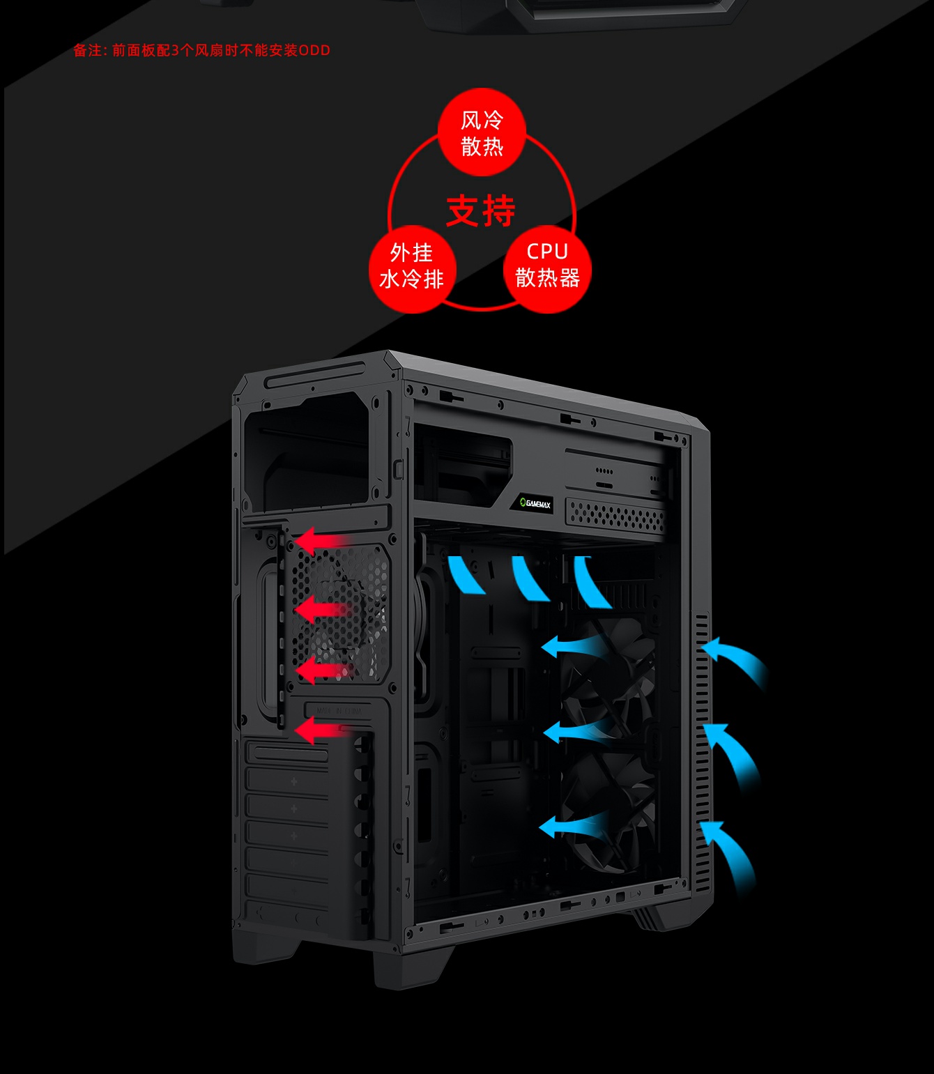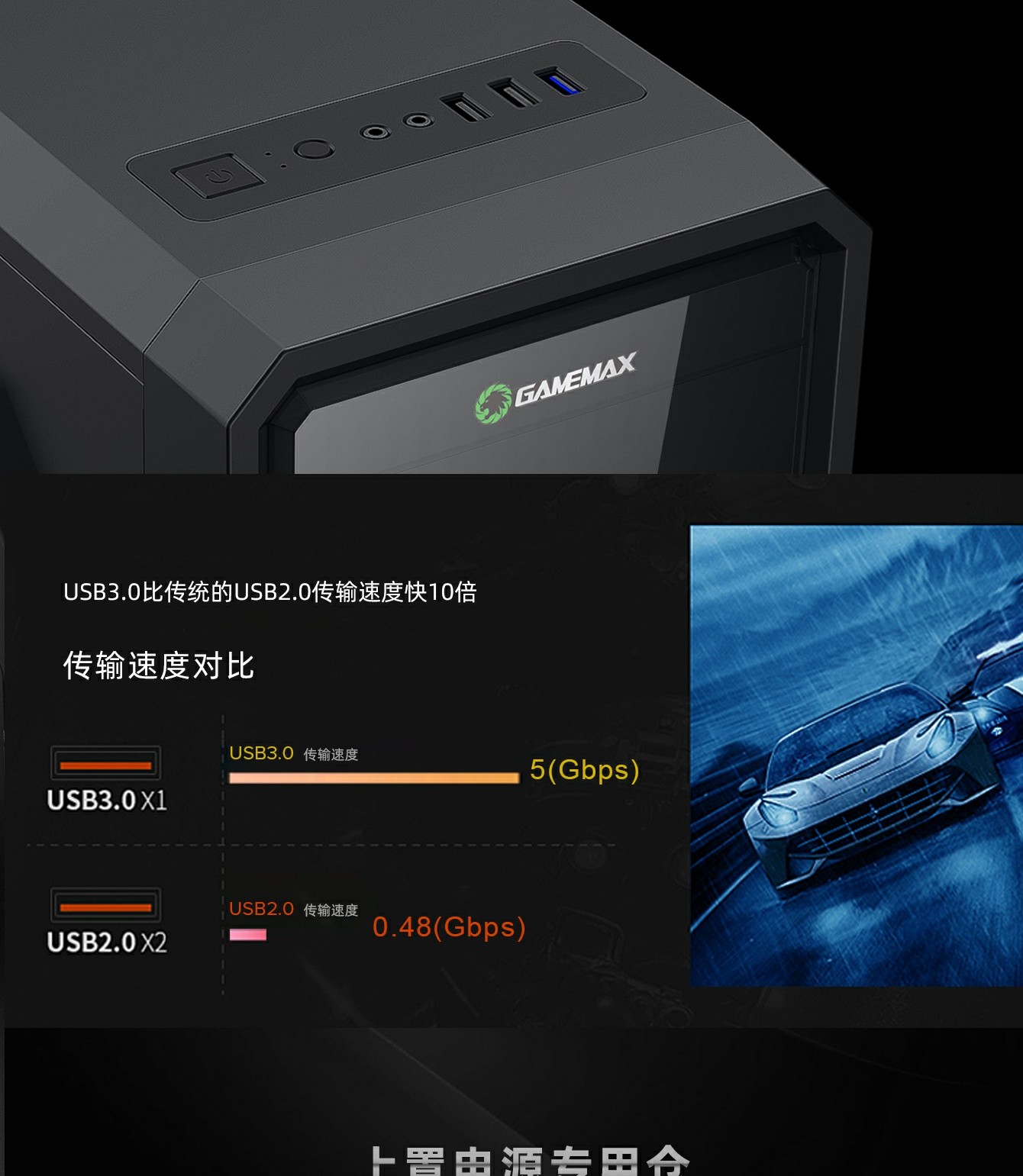 独特电源仓分开上置设计,电源线长很容易管理