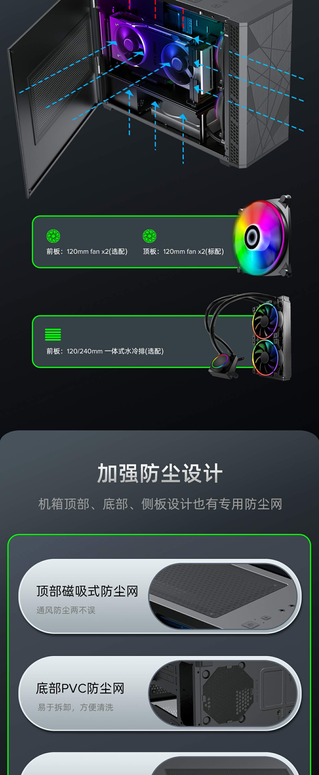 Water Cooling SupportFront120mm*1 or 240mm*1