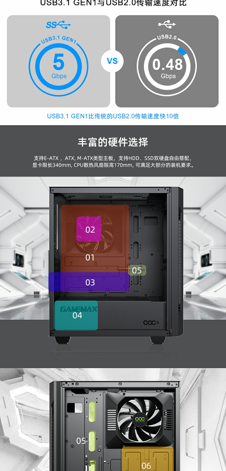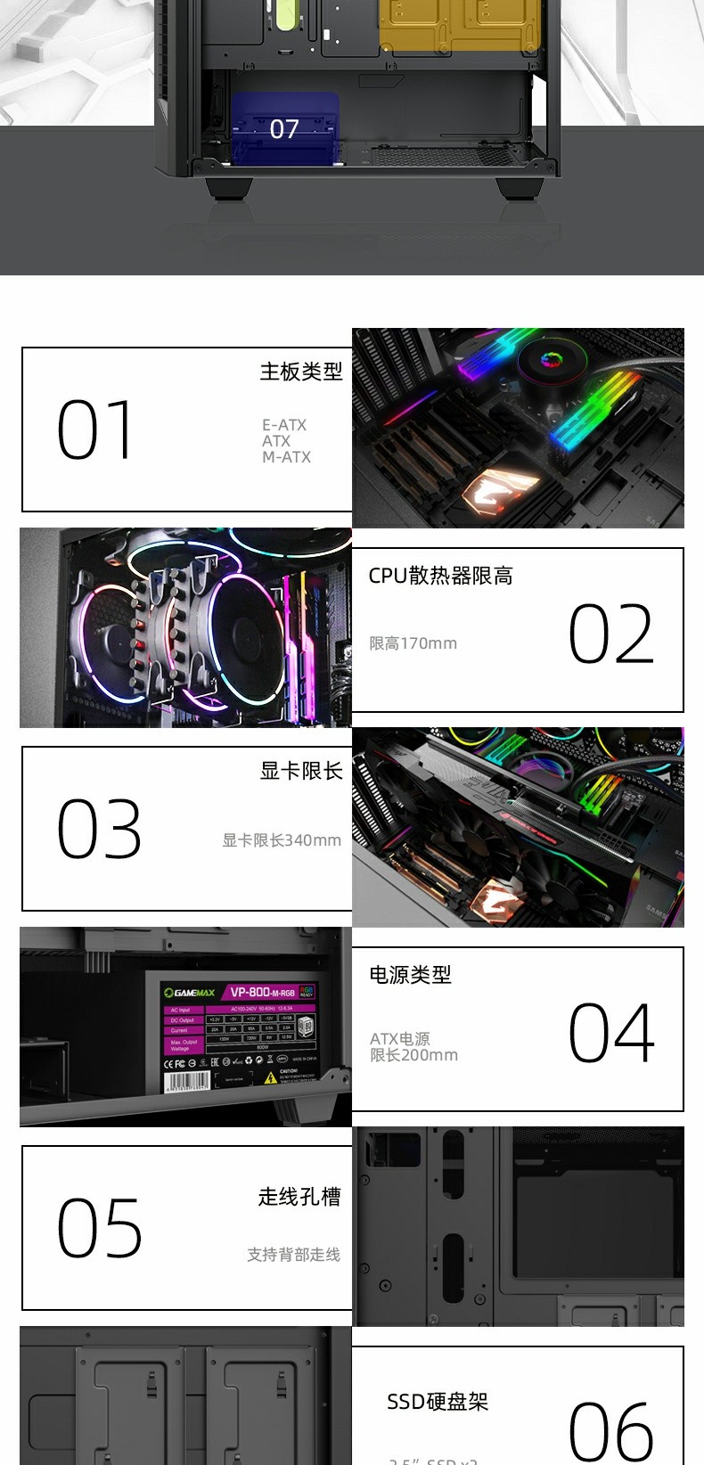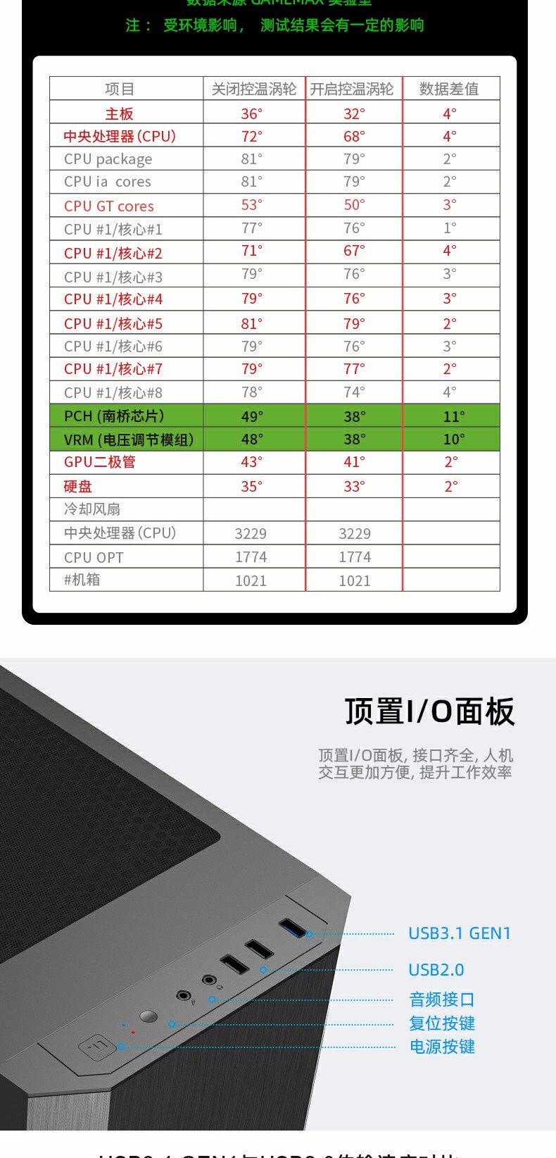 | 风冷 | 前板 | 3x120mm,2x140mm(选配) |