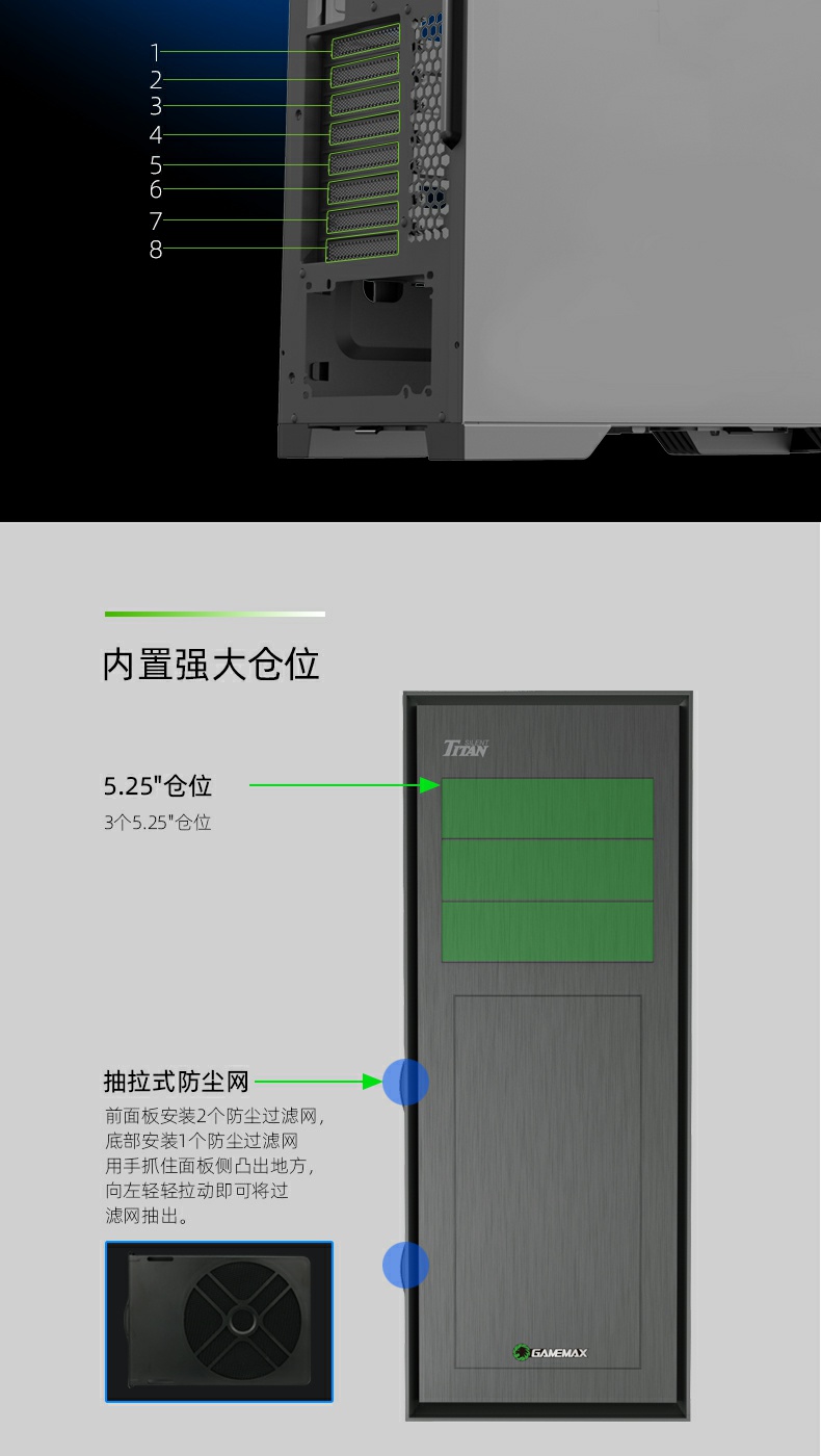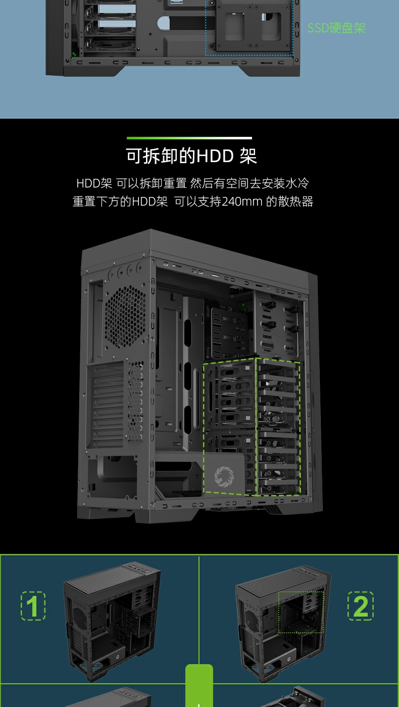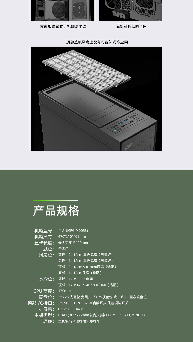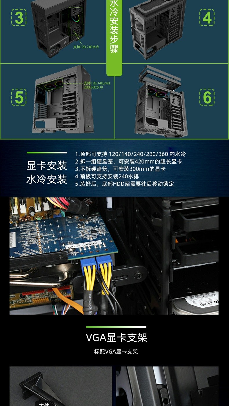 | Water Cooling Support | Front | Support 240/360mm water cooling |