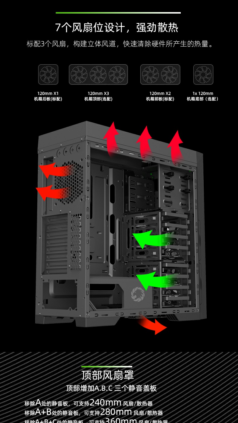 | (Radiator Size) | Top | Support 240/360mm water cooling |