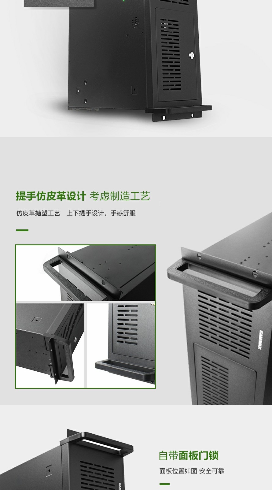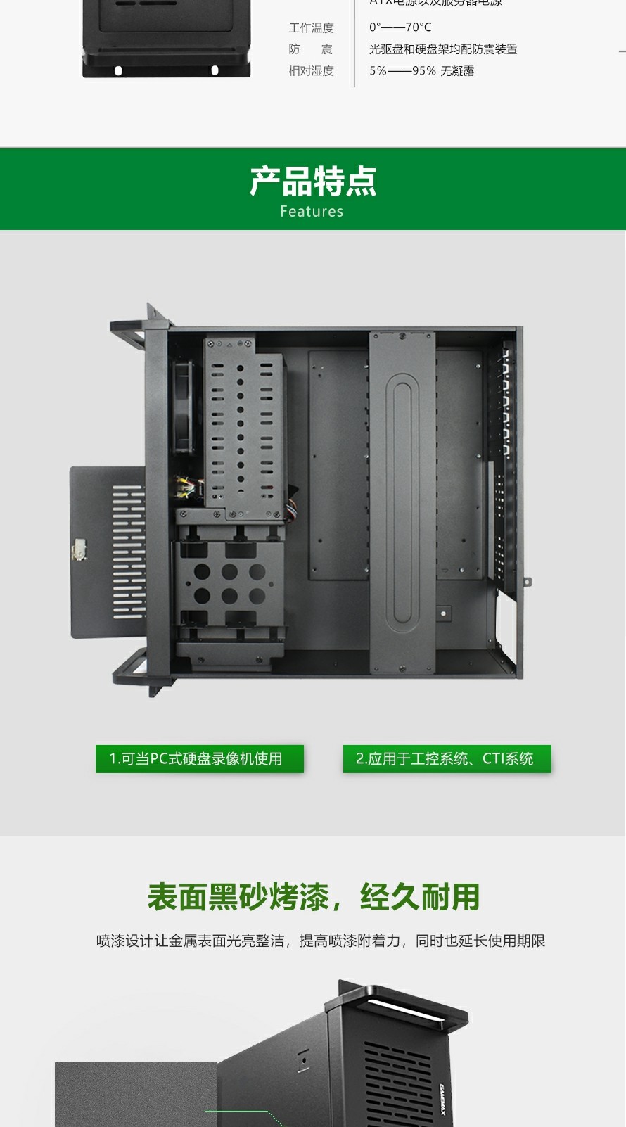 | 机架材质 | 左右耳板、固定片SECC/1.0、把手片SPCC/1.5外,其它SPCC/0.8,内部黑细砂 |
